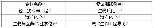 表1 海洋科学与生物工程学院硕士研究生复试专业测试科目