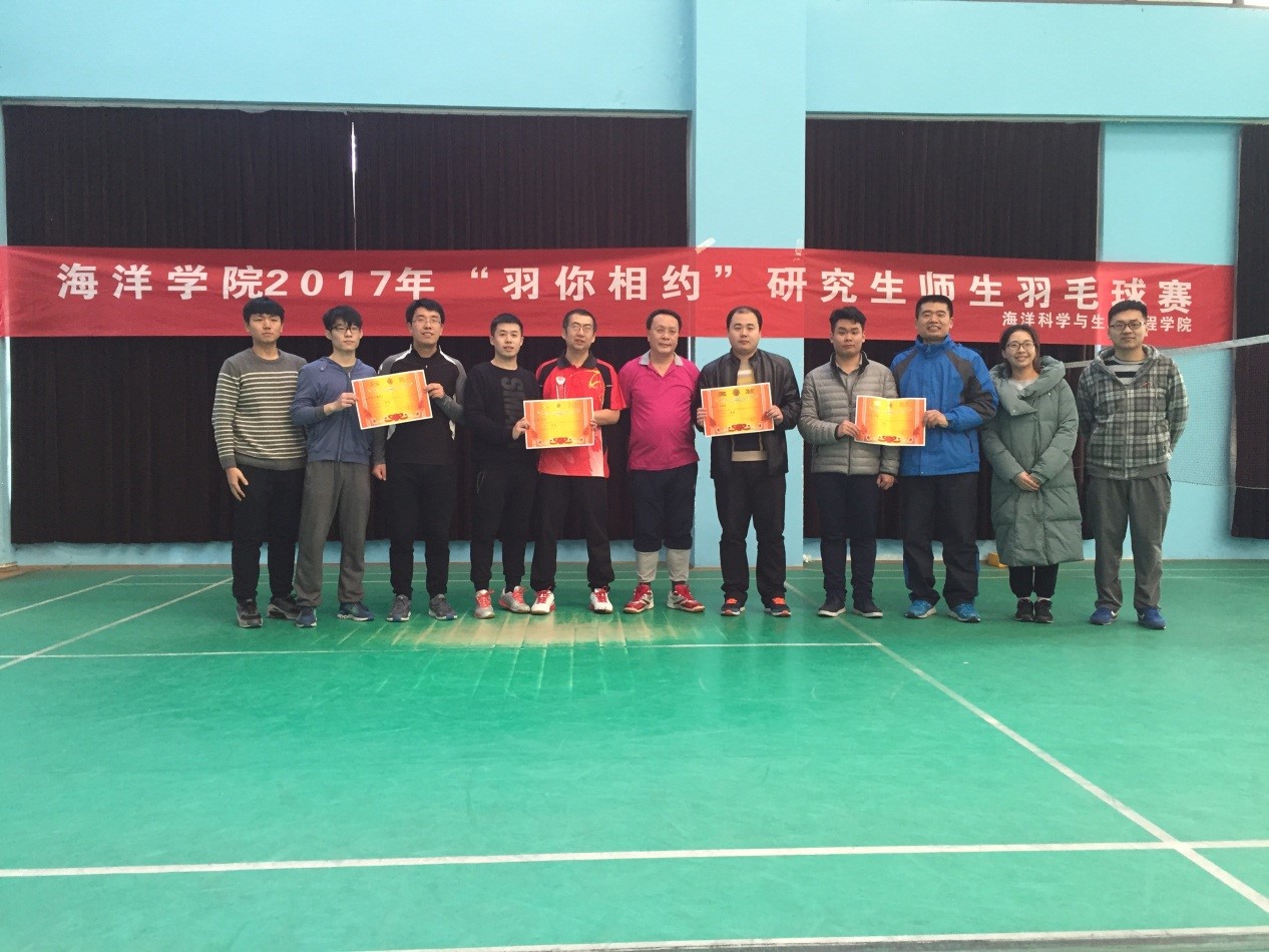 “扬帆把舵,奋勇争先;放飞梦想,拥抱海洋”。12月6日,在海洋学院院领导的大力支持下,在海洋学院教职工及研究生同学的积极参与下,海洋科学与生物工程学院承办的首届2017年“羽你相约”研究生师生羽毛球赛圆满结束。