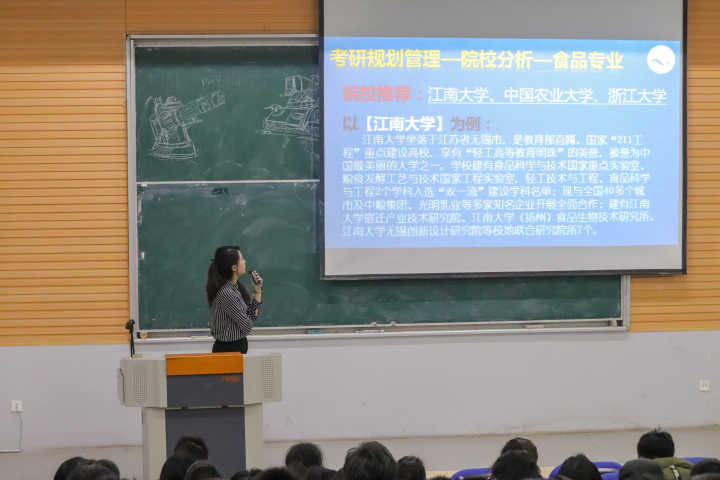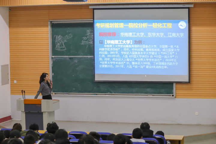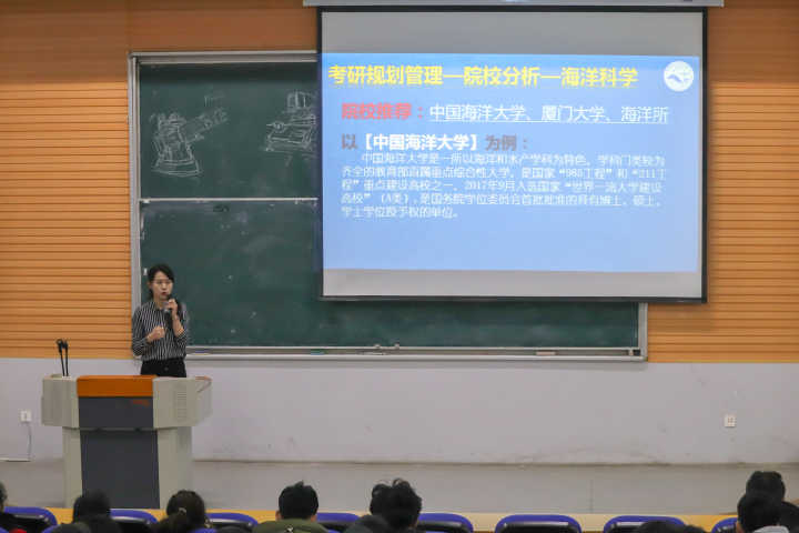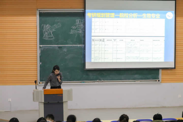 大会从“考风考纪管理、自身安全管理、考研规划管理、心理压管理力”四个方面展开。大会开始,刘老师告诫大家要“诚信应考”,切勿作弊,自觉遵守考纪,诚信应考,是每个学生应尽的义务。而后,强调了假期自身安全问题。通过例举事例,引导同学们合理应对突发事件,并表示“平安健康、学业有成”是家人和学校共同的愿望。大学生毕业面临“就业、考研、考公、出国”等选择,鉴于大部分同学倾向于考研,会上,刘老师进行着重阐述。让同学们明确是否要考研,对考研有何打算和规划。并就海科、轻化、食品、生物四个专业进行专业分析和院校分析,教授学生如何关注重点报考信息,找准自己专业的学科门类,了解所学专业对应方向,以及院校的招生人数、报考分数、考试科目等详细信息。最后,关于心理压力排解,刘老师也给大家提出几点方法,引导同学们保持心情愉悦,健康生活。
