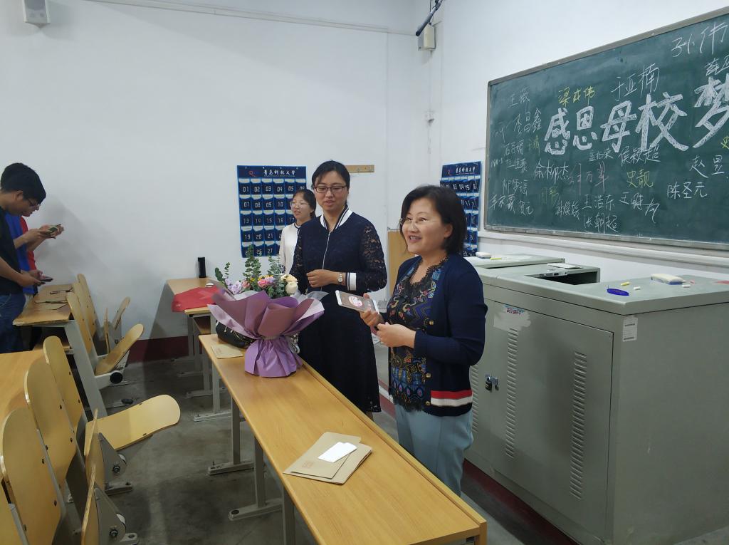 在老师的号召下,同学们一起合唱《真心英雄》,大家情绪高涨。最后,同学们在黑板上签上自己的名字,与老师合影留念,为自己的大学生活留下积极美好的回忆。