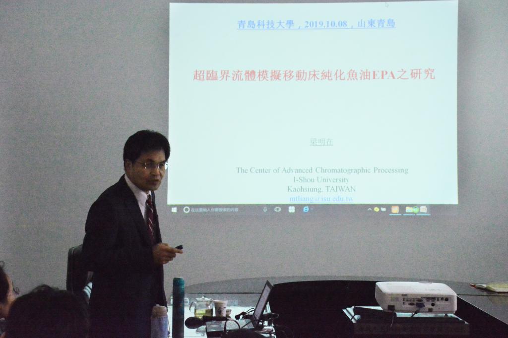 为加强海峡两岸科技联系,促进两岸科学快速发展,10月8日上午10:00点,台湾义守大学梁明才教授莅临青岛科技大学海洋科学与生物工程学院进行学术交流,学院院长陈夫山及各专业教师积极参加此次学术交流会。