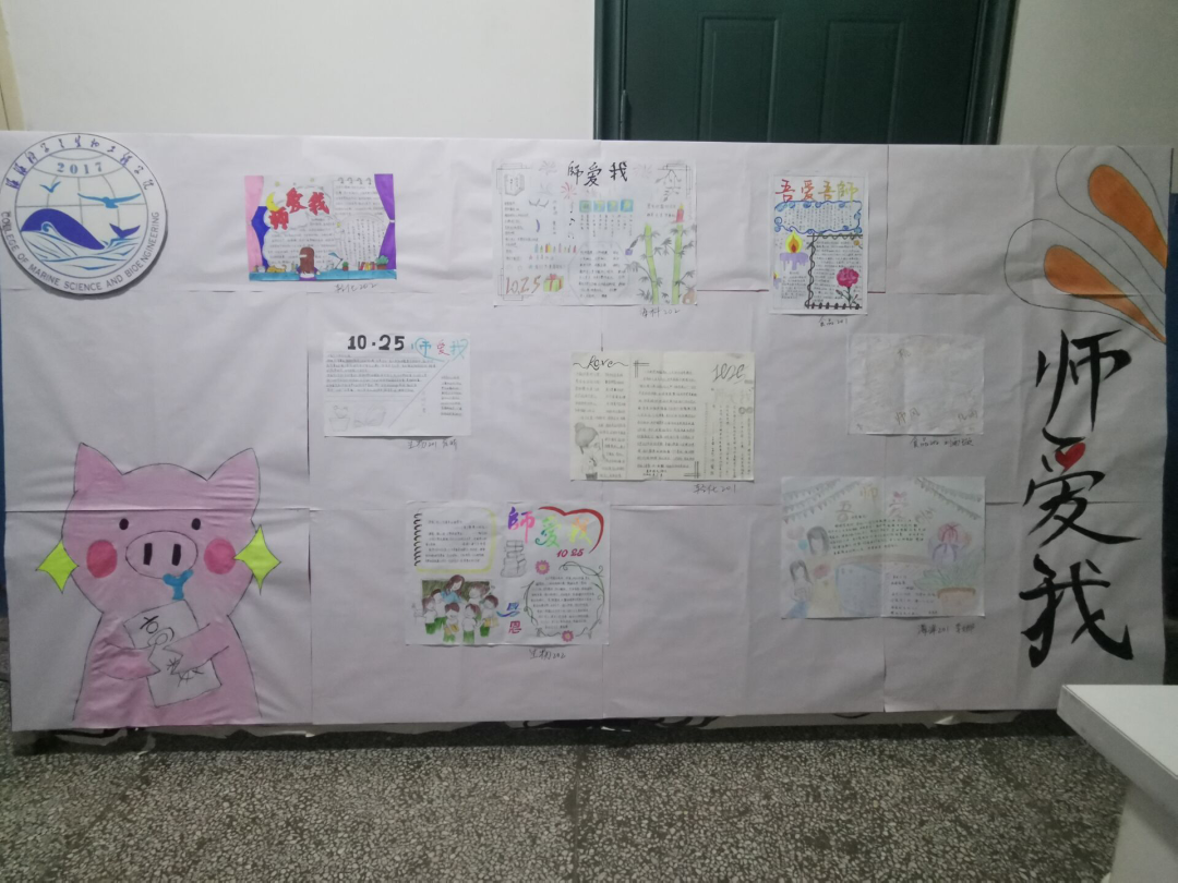 10.25,谐音“师爱我”。海洋学院为增进师生感情,构建良好学习环境,特组织开展了“师爱我”主题系列活动。该活动主要由“师爱我”手抄报比赛、“我与老师合张影”及“教师寄语”三部分组成。