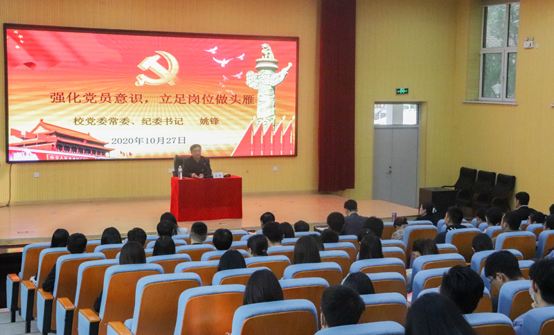 10月27日下午,学校党委常委、纪委书记,山东省监察委员会驻青岛科技大学监察专员姚锋教授在尚舜讲学厅为海洋学院讲授题为“强化党员意识 立足岗位做头雁”的党课。
