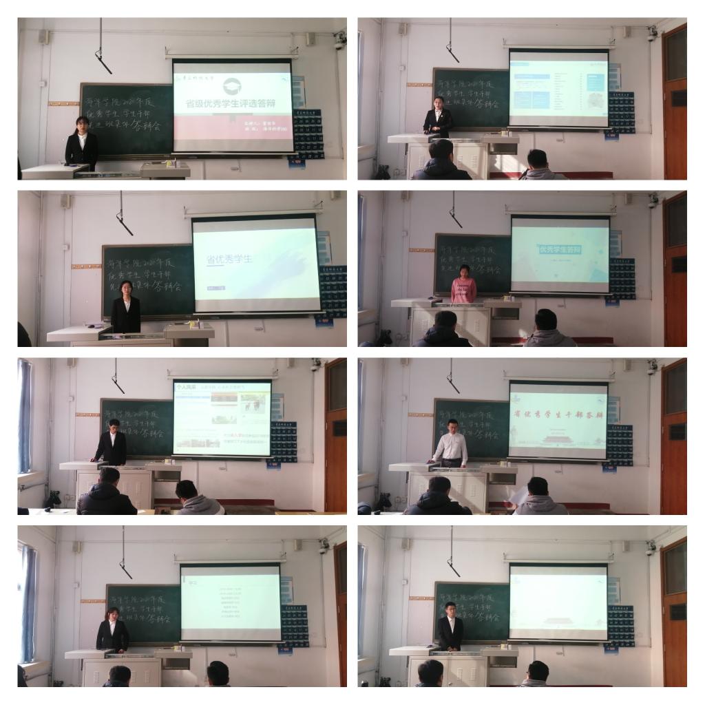 会上,13名参与答辩的同学王嘉乐、陈景瑞、夏旦琳、吕姝叡、江子琪、董丽华、孙玉昆、晏刘新、常清琪、赵昊、亓玺、吴冬梅、曲浩依次进行了答辩。各位选手在答辩过程中认真自信,分别从思想情况、学业成绩、所获奖项、科研成果以及社会实践方面进行了细致的介绍,同时表达了自己对未来的计划与展望。
