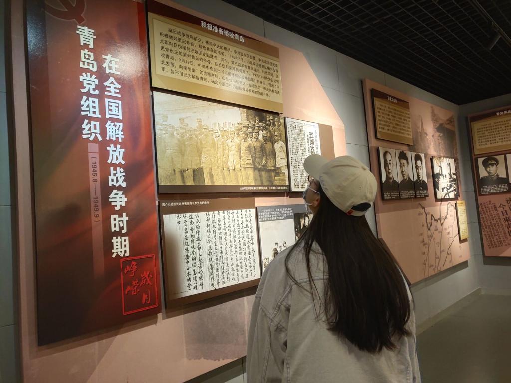 在纪念馆工作人员的带领下,班内同学分批次有序参观了基本陈列厅、专题展厅和党史主题公园,党史纪念馆宣讲团队为大家介绍了青岛的党史以及此馆的由来,并呼吁青年学生要具备一颗敬党、爱党之心,积极参与党和国家的建设,弘扬党的精神和文化。