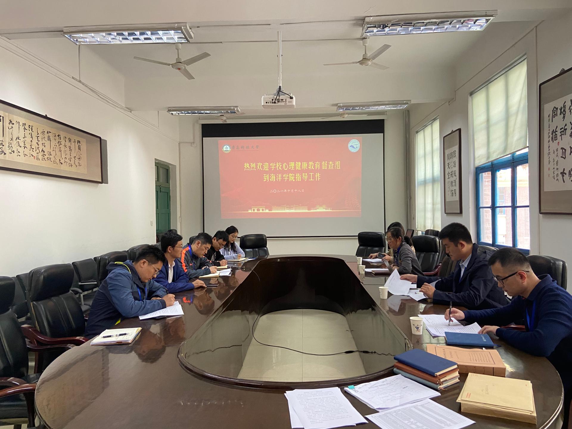 为全面贯彻落实上级有关会议精神、通知要求,深入排查和整改学生安全问题和薄弱环节,根据山东省《学校安全专项督查工作方案》,学生工作处、研究生院、校团委组建联合督查组,于10月18日下午到海洋学院进行学生安全和心理健康教育工作专项抽查。海洋学院党政领导班子、学工办老师参加会议。