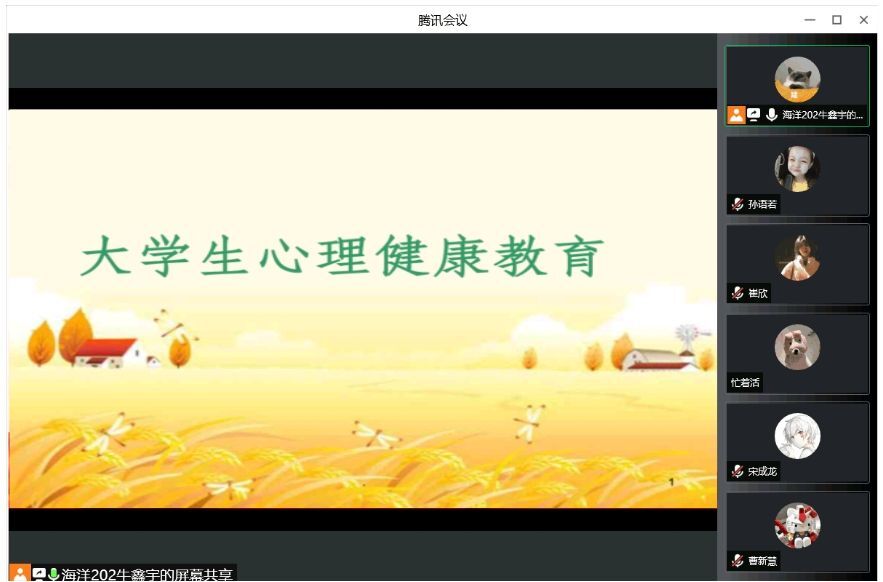 为进一步提高本班同学的心理素质,促进同学的身心健康和谐,宣传普及心理健康知识,深入开展心理健康教育。2022年3月17日上午10点,海洋学院海科202班在一教101开展了心理健康主题班会的活动。这次班会由心理委员孙忠浩主持。活动中,心理委员讲述了关于“心理健康”的知识,各位同学也积极发表了自己的看法。各位同学都从班级这个集体中感受到了家的温馨。