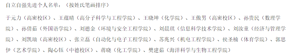近日,根据《青岛科技大学“十大自立自强标兵”评选办法》,学校于2022年4月启动第十八届“十大自立自强标兵”评选活动,经学生申请、学院推荐与公示、学校审核、网络展示、网络投票、民主投票等程序,海洋学院樊建茹被评为“自立自强先进个人”。