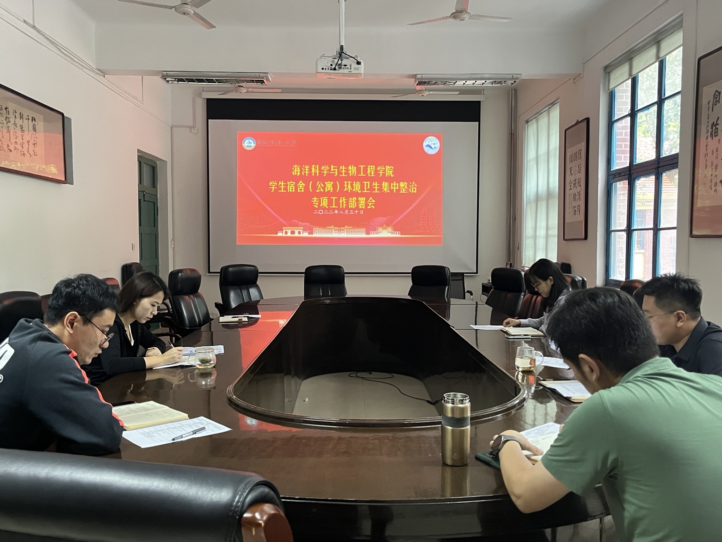 会上,李浩传达了学校《关于开展学生宿舍(公寓)环境卫生集中整治工作的方案》的要求,与会人员对《海洋科学与生物工程学院学生宿舍(公寓)环境卫生集中整治工作方案》并对相关细节进行研讨。