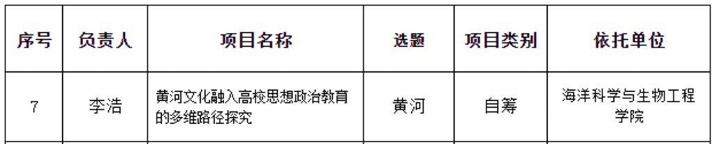 海洋学院李浩老师项目《黄河文化融入高校思想政治教育的多维路径探究》获2022年度青岛科技大学社科基金项目立项。