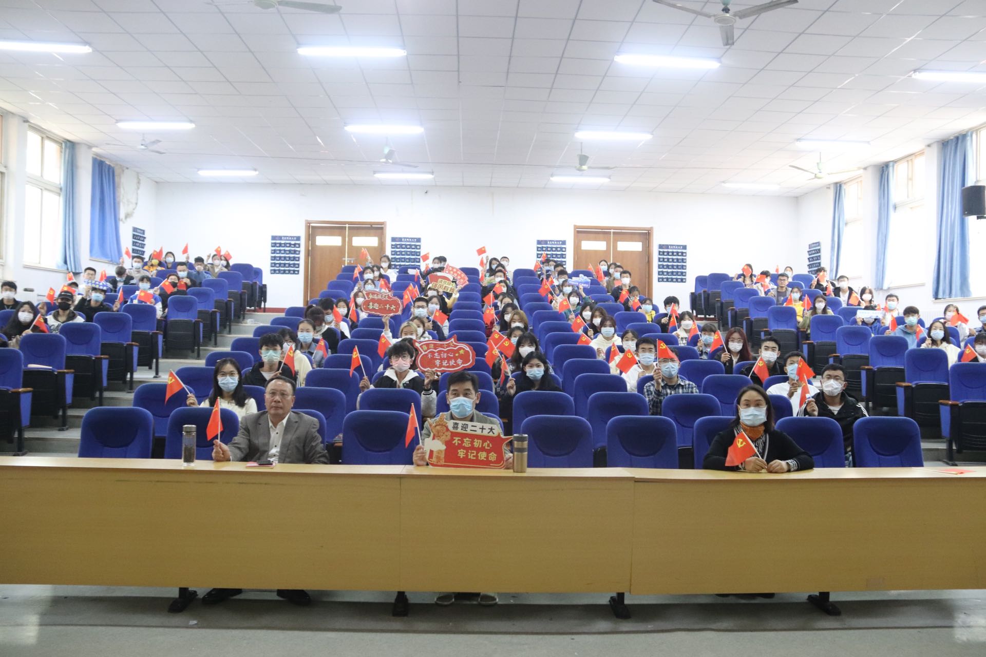 10月16日上午,中国共产党第二十次全国代表大会开幕。海洋学院第一时间组织师生党员代表统一于二教101进行观看学习。同时,各班级以团支部为单位通过多个会场同步收看会议直播,共同学习领会习近平总书记代表第十九届中央委员会向党的二十大所作报告内容。