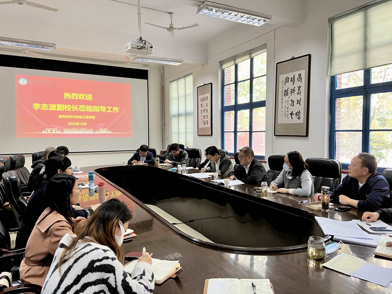 10月28日下午,学校党委常委、副校长李志波到海洋学院调度学校第十一次党代会重点任务落实推进情况。