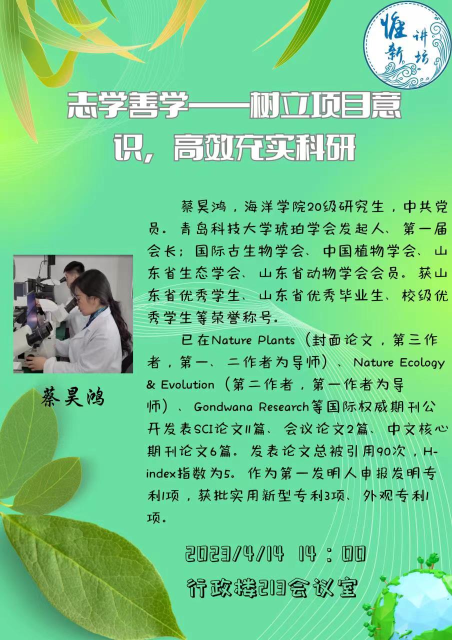 惟新讲坛预告|蔡昊鸿:志学善学——树立项目意识,高效充实科研