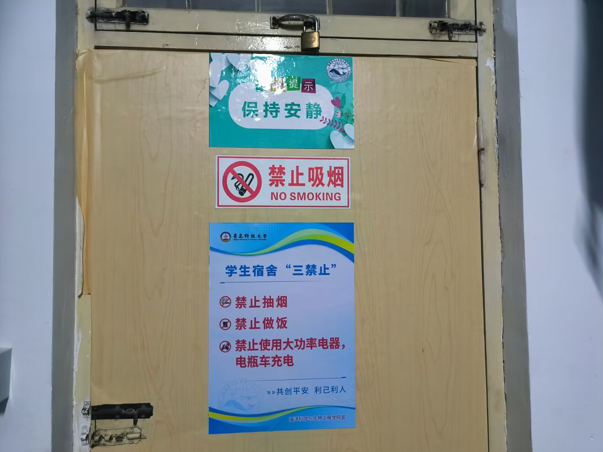 创建宿舍文明标语,使宿舍工作抓在日常。海洋学院设计“禁止吸烟”、“保持安静”、“文明宿舍”等宿舍文明标语,并将相关文明标语张贴在公寓、宿舍突出位置,使文明宿舍创建入脑入心,保证文明宿舍创建的质量和效果。
