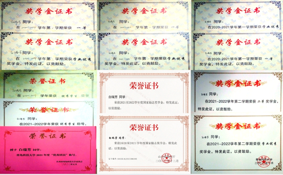 她深知科研的重要性,从大一开始就积极与专业课老师联系,进入实验室,学习相关实验操作方法和相关专业文献,在实验项目的重重阻碍中迎难而上。同时,紧跟学校科技创新的工作调度,重视科技创新的重要性,积极参与各项比赛,累计获国家级奖项4项,省市级奖项4项,校级奖项3项。