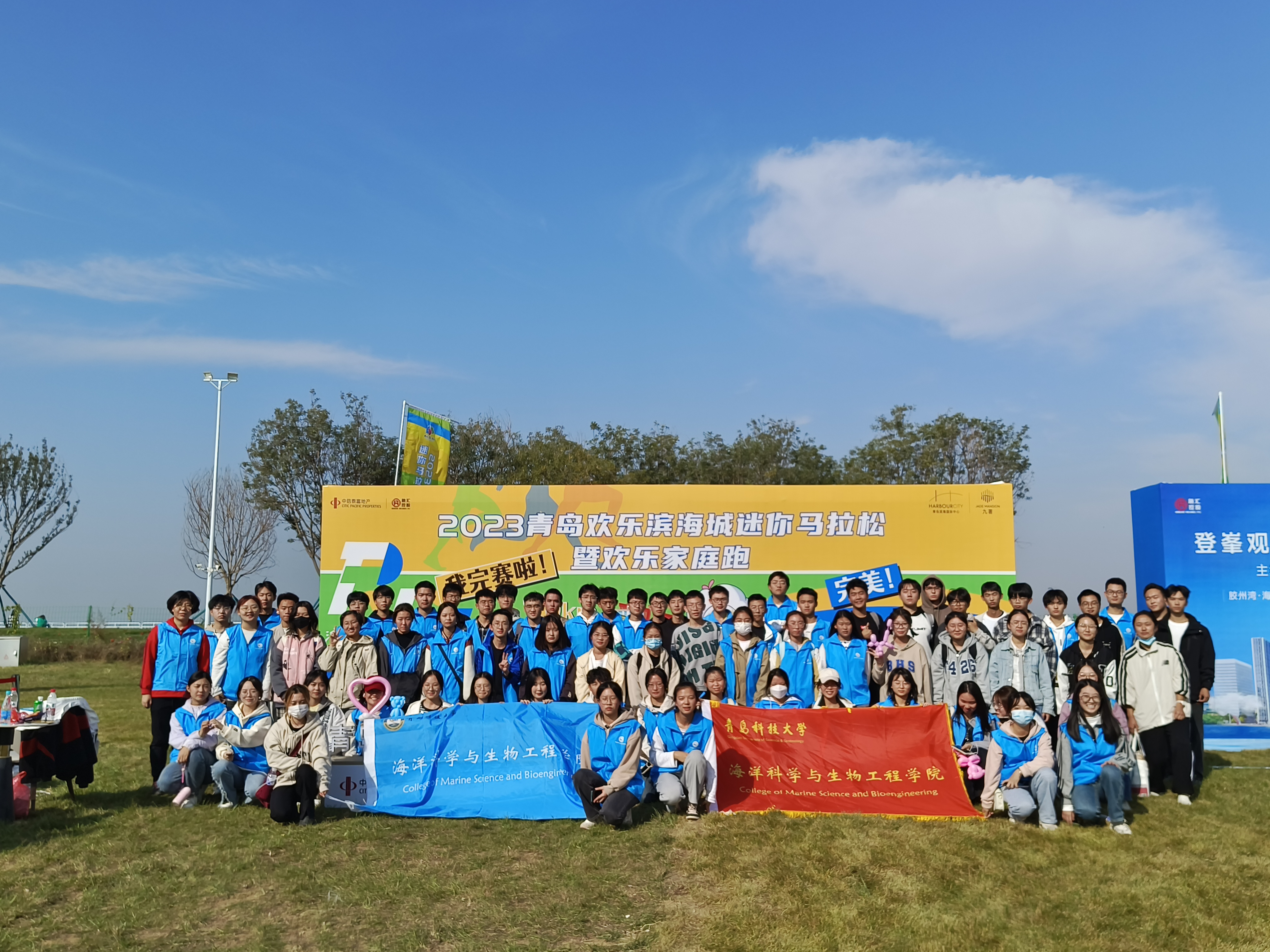 10月29日,2023青岛欢乐滨海城10公里竞速暨欢乐家庭跑鸣笛起跑,近2000名选手齐聚市北,来自海洋学院的80名“小浪花”青年志愿者坚守在赛道的各个点位,闪耀在赛道的各个角落,为赛场增添了一抹青春亮色。