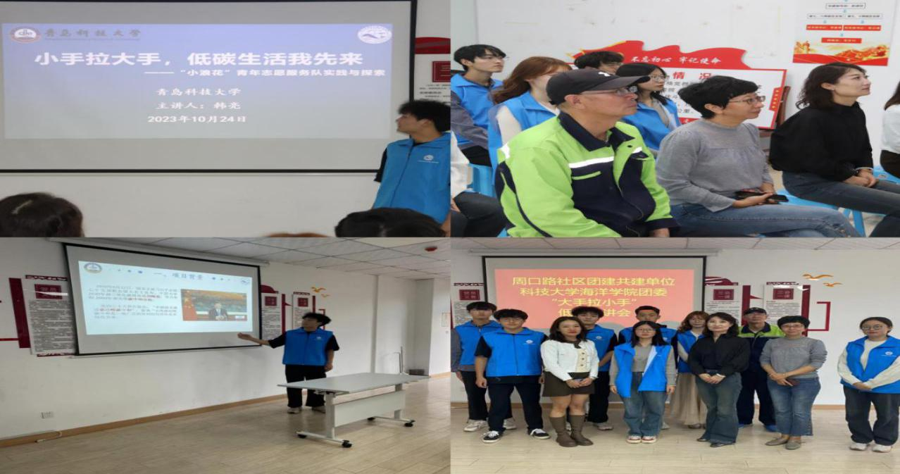 2023年10月24日,海洋学院“小浪花”青年志愿服务队前往青岛市市北区周口路社区展开“低碳”宣讲暨减塑艺术作品展行动。此次活动由2021级辅导员吕珊珊带队。