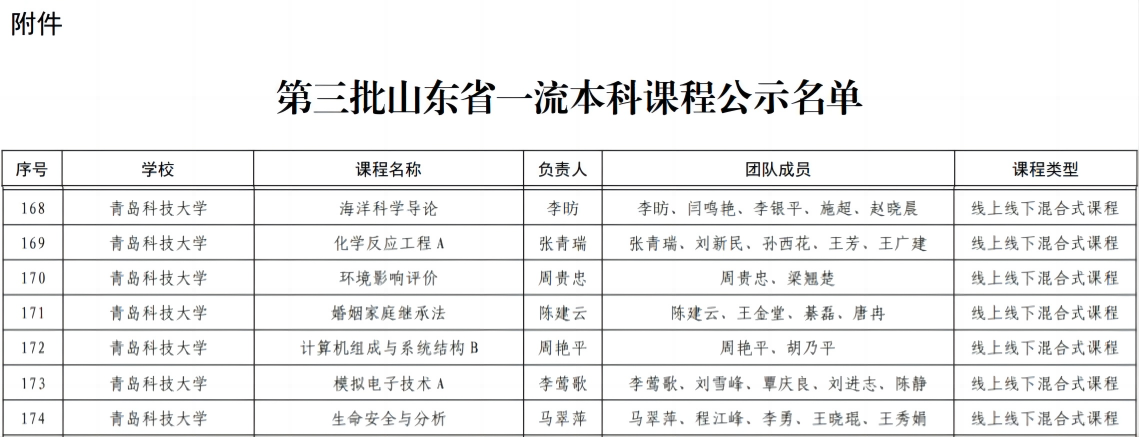 近日,山东省教育厅公布第三批山东省一流本科课程,根据《山东省教育厅关于开展第三批山东省一流本科课程建设及国家级一流本科课程推荐工作的通知》(鲁教高函〔2023〕41号)要求,经学校推荐、形式审查、专家评审等程序,认定886门课程为第三批山东省一流本科课程。