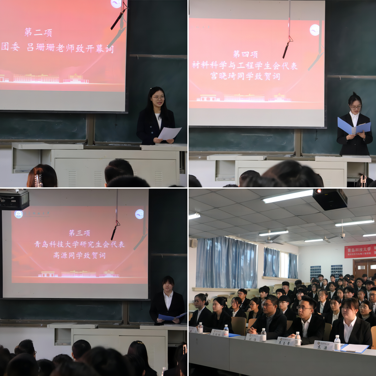 高源同学代表学校研究生会、宫晓琦同学代表材料科学与工程学院分别致贺词,预祝海洋学院第六次学生代表大会、第三次研究生代表大会顺利召开,圆满成功。