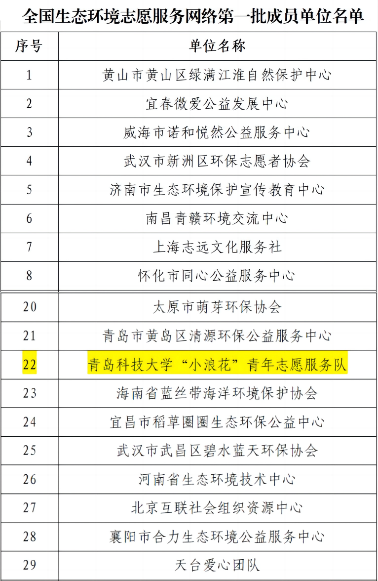 近日,生态环境部宣传教育中心公示了全国生态环境志愿服务网络第一批成员单位名单,全国146家申请单位成为网络第一批成员单位,其中海洋科学与生物工程学院的“小浪花”青年志愿服务队成功入选。