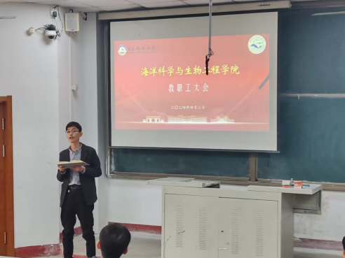 本次会议还进行了海洋科学与生物工程学院分工会委员的选举工作,经全体参会教职工投票选举出了学院新一届分工会委员:王晓琨、刘金岭、吕珊珊、史振平、李勇、李红燕。