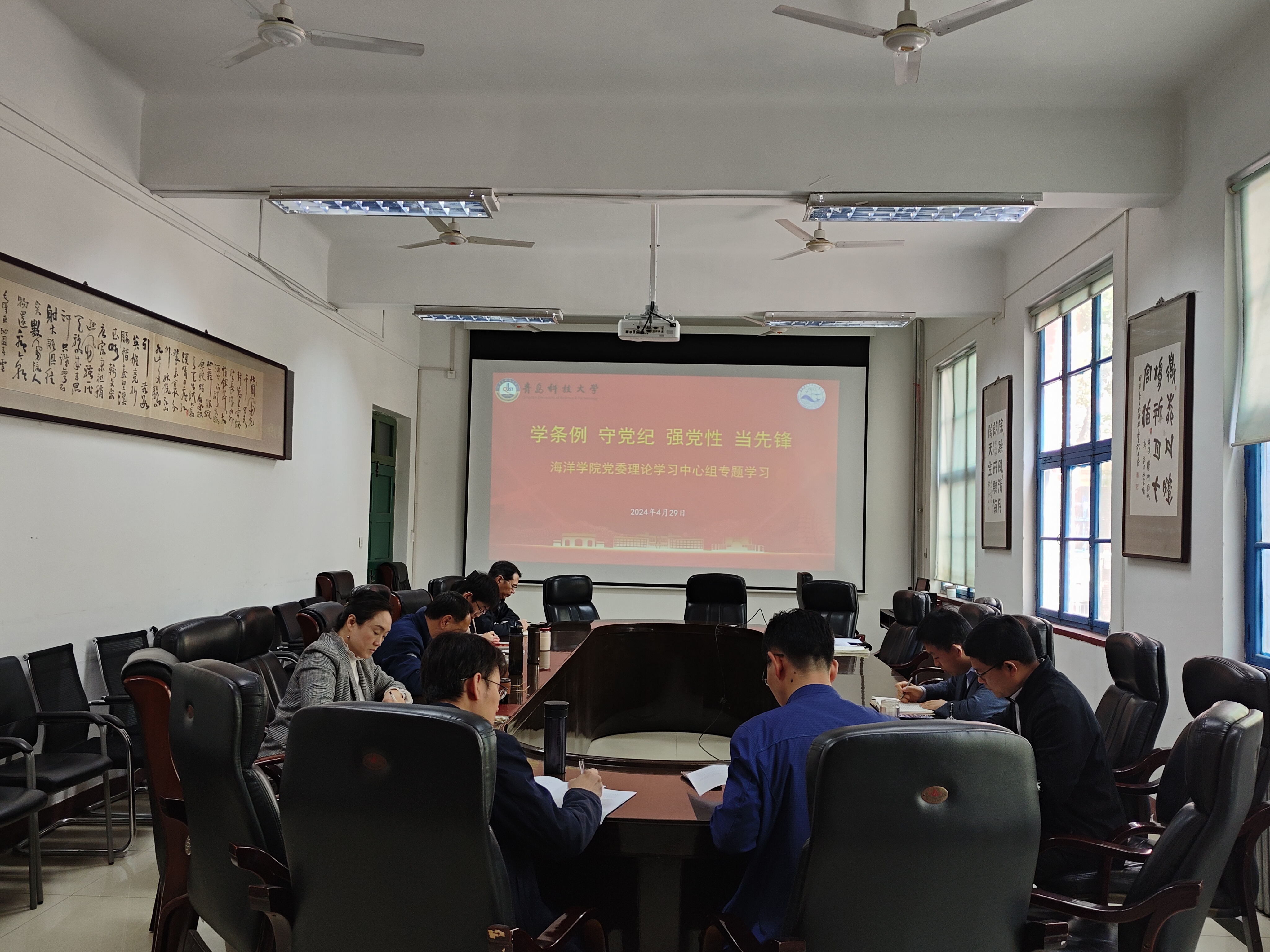 4月29日上午,海洋学院党委理论学习中心组围绕《中国共产党纪律处分条例》,开展“学条例 守党纪 强党性 当先锋”专题学习。党委书记周宪锋主持学习,全体中心组成员参加。