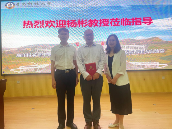 学术讨论会第二阶段由海洋科学与生物工程学院院长顾玉超教授为杨彬研究员颁发青岛科技大学客座教授聘书。全体参会师生合影留念。