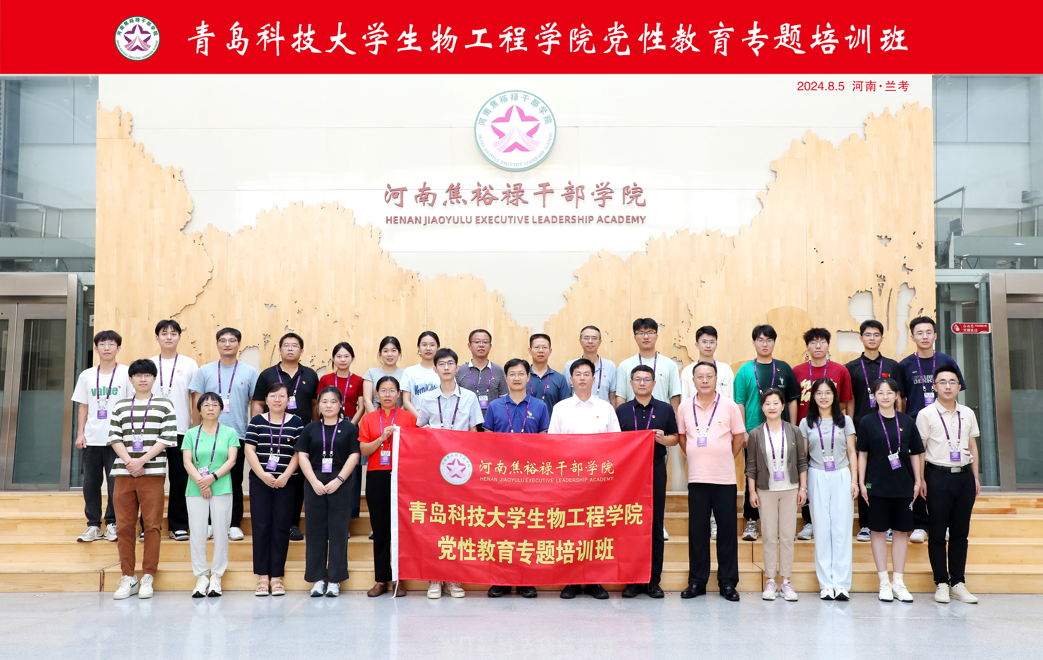 8月4日至8月8日,青岛科技大学生物工程学院赴河南焦裕禄干部学院开展党性教育专题培训。青岛科技大学生物工程学院党委书记周宪锋,河南焦裕禄干部学院党委委员、副院长王开出席开班式,青岛科技大学生物工程学院党委副书记兼副院长刘浩主持开班式。
