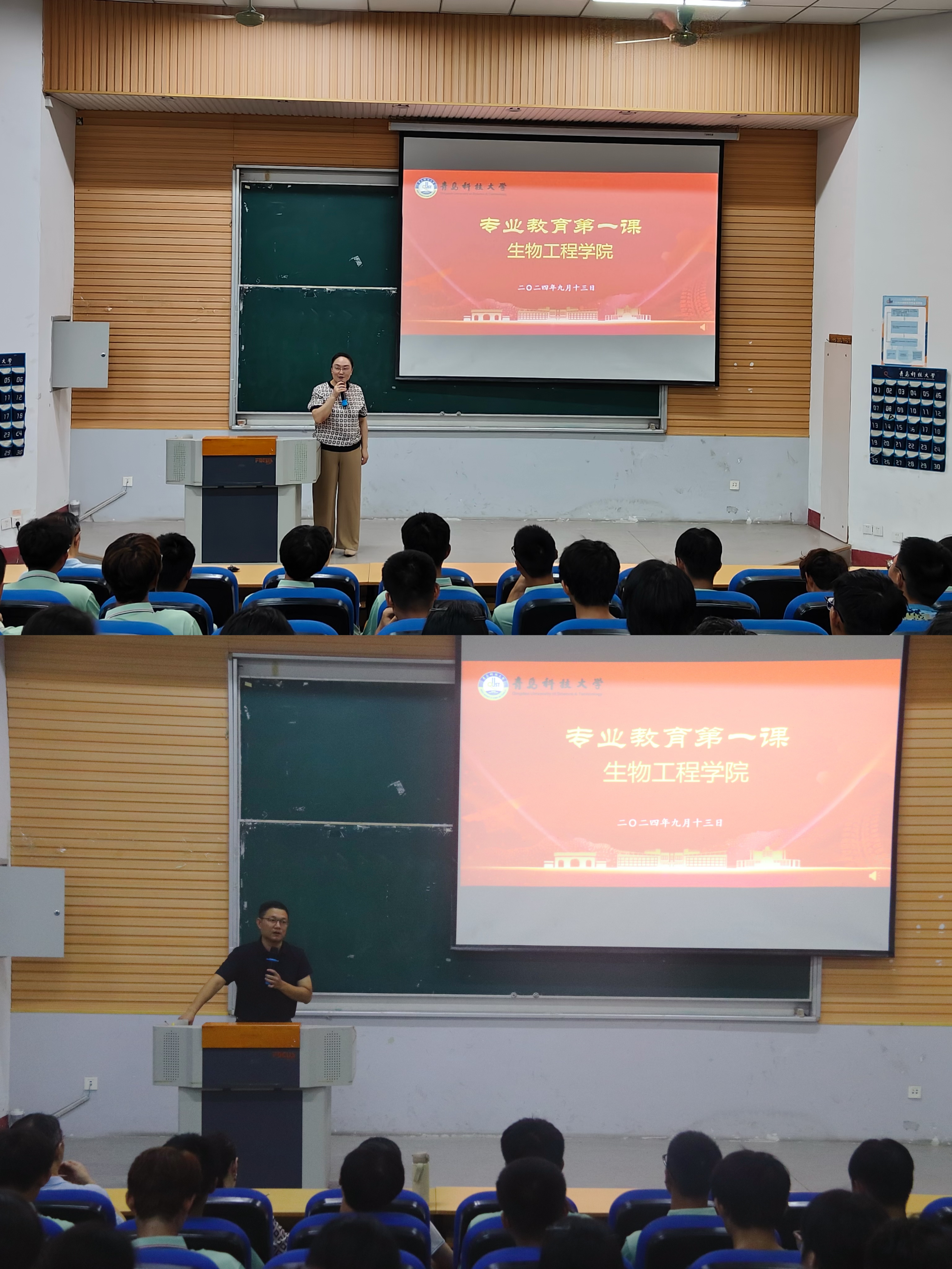为了深化2024级新生对学院专业的认识,使新生们更迅速地融入大学生活,提前做好生涯规划。9月13日晚,生物工程学院在彤程楼101室召开专业教育第一课。生物工程学院副院长李昉、党委副书记兼副院长刘浩以及各专业教师出席了本次活动,2024级全体学生参加。