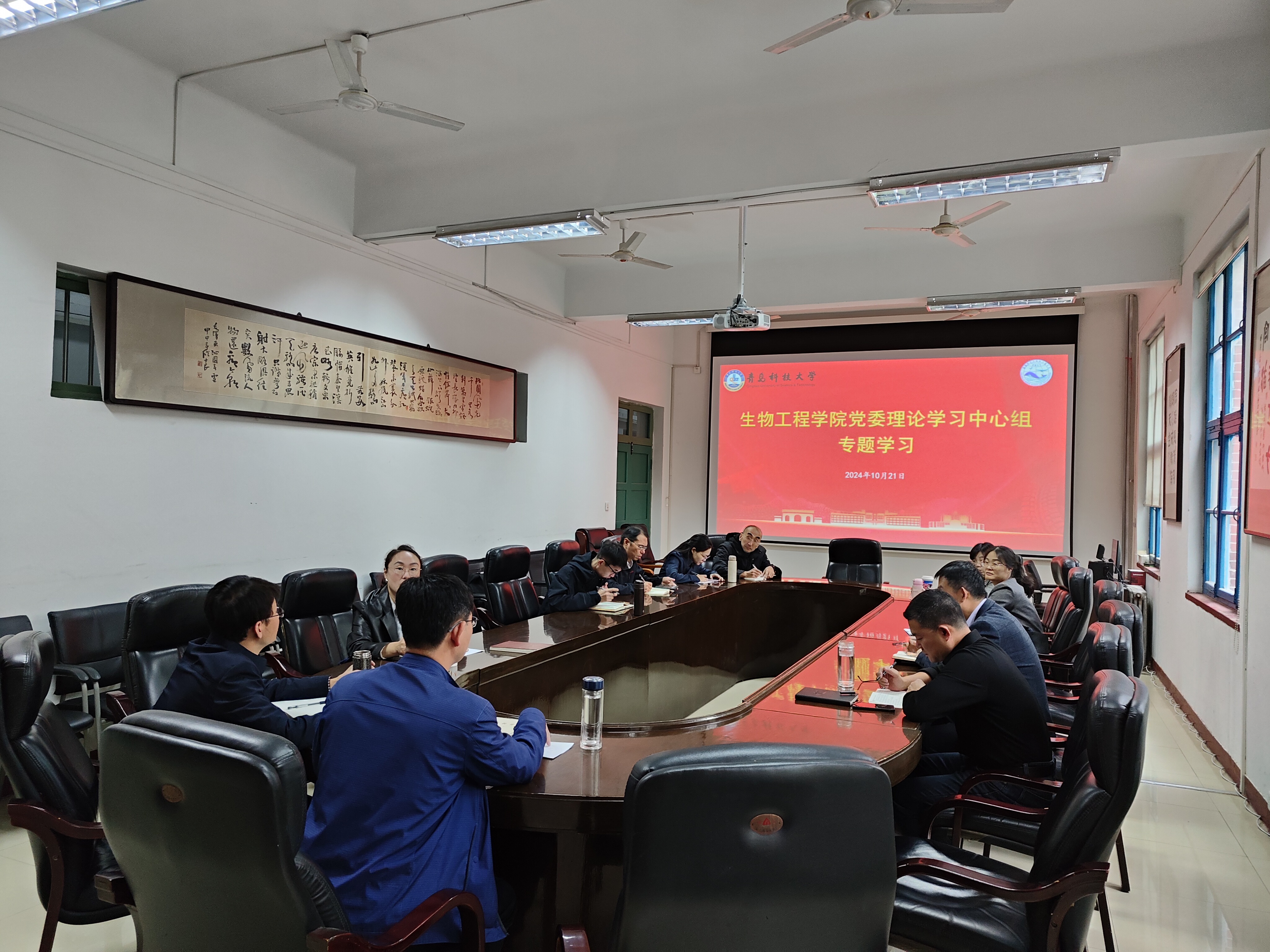 10月21日上午,生物工程学院党委理论学习中心组围绕《中国共产党纪律处分条例》与习近平总书记关于教育的重要论述,开展专题学习。党委书记周宪锋主持学习,全体中心组成员参加。