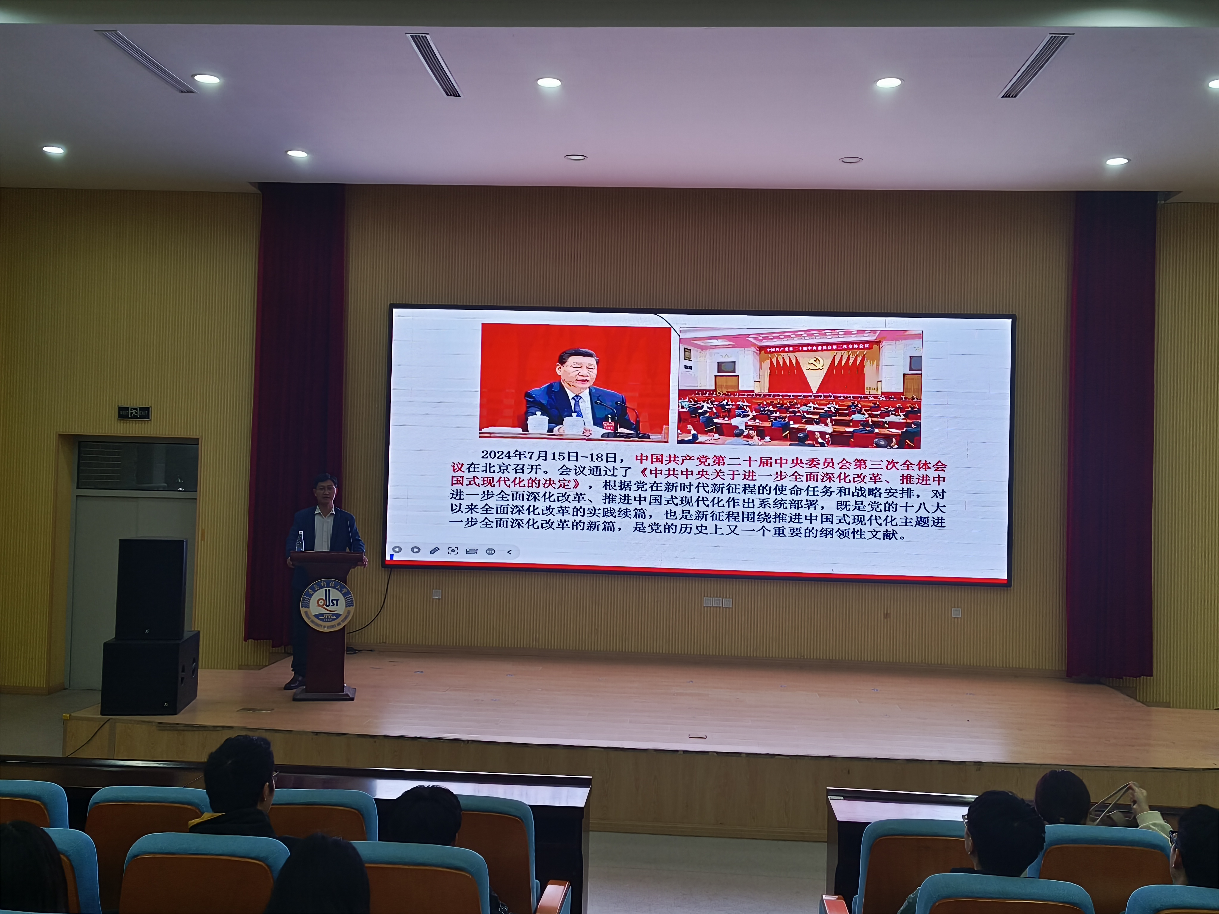 为深入学习贯彻党的二十届三中全会精神,10月22日,生物工程学院举办党组织书记专题党课活动。生物工程学院党委书记周宪锋以“进一步全面深化改革,推进中国式现代化”为题为全院学生党员、发展对象和积极分子作专题党课。