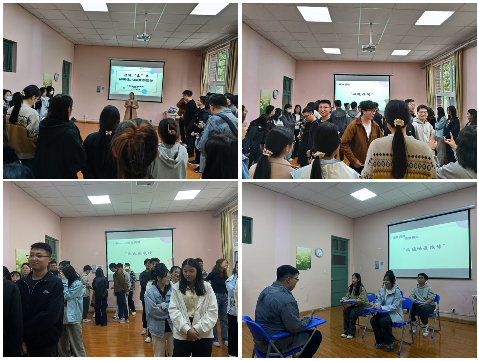 语言沟通:场景演练,化解现实困境。“沟通场景演练”环节聚焦于研究生阶段常见的社交情境,如“导师对你的组会汇报表示不满该如何应对”以及“如何化解与室友或同学的冲突”等。成员们分组进行角色扮演,现场实践积极倾听、非暴力沟通等有效技巧。邹亚平针对每组表现进行细致点评,引导大家反思自身的沟通模式,学习调整表达方式。有同学感慨道:“原来换一种说法,就能让对话更顺畅,冲突也能更容易化解。”