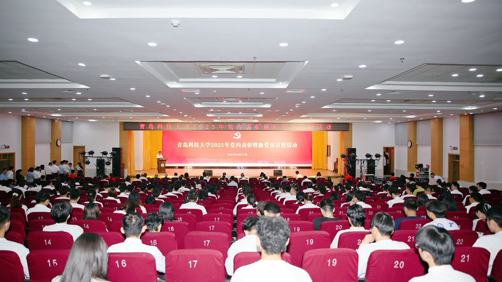 为庆祝中国共产党成立104周年,6月27日下午,学校在崂山校区第二报告厅隆重举行2025年党内表彰暨新党员宣誓活动。学校党委书记杨天梅出席活动并讲授专题党课。党委领导班子成员李勇、沈文青、张洪坤、秦姣出席活动。活动由党委常委、组织部部长朱敬义主持。