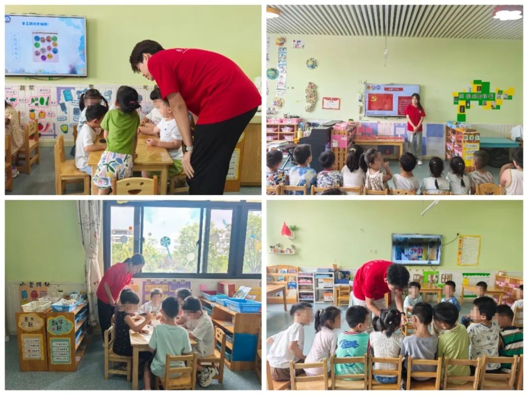 团队负责人刘钟毓详细介绍了课程安排与实践开展情况。学院老师们随后走进课堂,观摩并与孩子们共同参与互动教学。“泉海童行”爱心志愿服务团为小朋友们精心设计了丰富多样的课程。其中包含认识国旗、党旗、军旗、团旗以及少先队队旗,帮助孩子们从小树立爱国意识、培养爱国情怀的红色主题课程;围绕章丘大葱,结合海洋科学专业内容,向小朋友们介绍这一当地特色农产品的相关知识,让孩子们更好地了解家乡文化的本土文化主题课程;以及引导小朋友海洋垃圾分类、利用纸壳废品制作工艺品,既结合了生物工程学院的海洋专业特色,又培养了小朋友的动手能力和环保意识的海洋主题课程。
