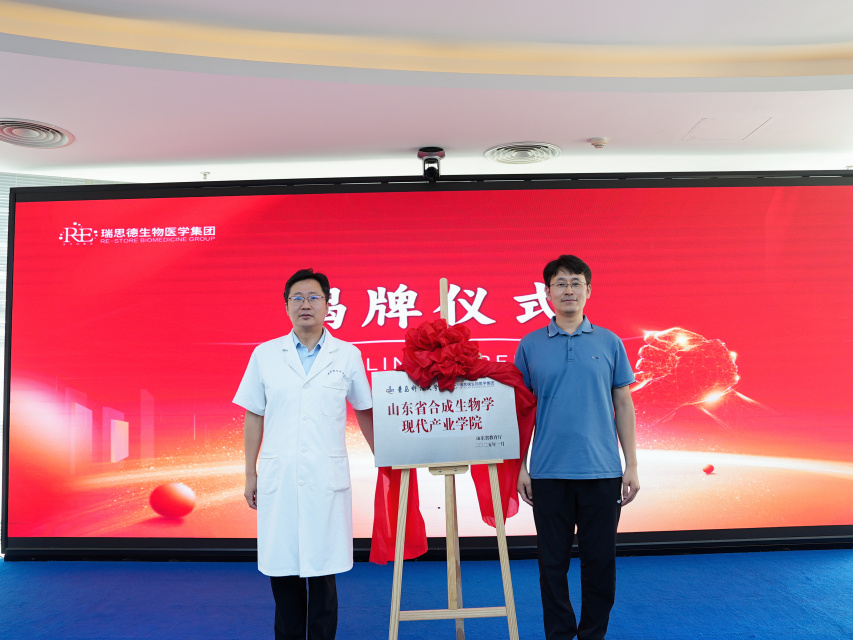 8月2日下午,生物工程学院院长顾玉超一行赴青岛瑞思德生物医学集团调研,并出席“山东省合成生物学现代产业学院(共建单位)”、“研究生联合培养基地”揭牌及产业导师聘任仪式。青岛瑞思德生物医学集团联合创始人、技术总裁、瑞思德研究院院长张炳强、瑞思德研究院副院长梁少帅等参加有关活动。