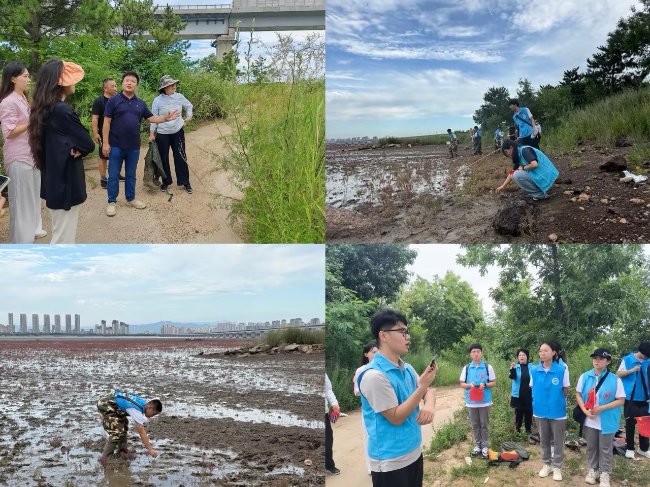城阳区海洋局工作人员现场讲解了碱蓬地的环境特点及其在湿地生态系统中的重要作用,碱蓬能通过根系吸收土壤中的盐分和重金属元素,有效降低土壤盐渍化程度,改善土壤结构;同时,生长过程中还能净化周边水体,吸附水中污染物,提升水体质量。此外,碱蓬形成的群落结构,为多种湿地生物提供栖息、繁殖场所,对维护生物多样性具有不可替代的作用。讲解人员强调,碱蓬在固碳减排方面也有重要贡献,属于典型‘蓝碳’生态系统组成部分,对应对气候变化具有积极意义。“小浪花”青年志愿服务队通过实地观察和互动学习,深刻认识到海洋生态修复的重要意义,进一步提升了生态文明意识。