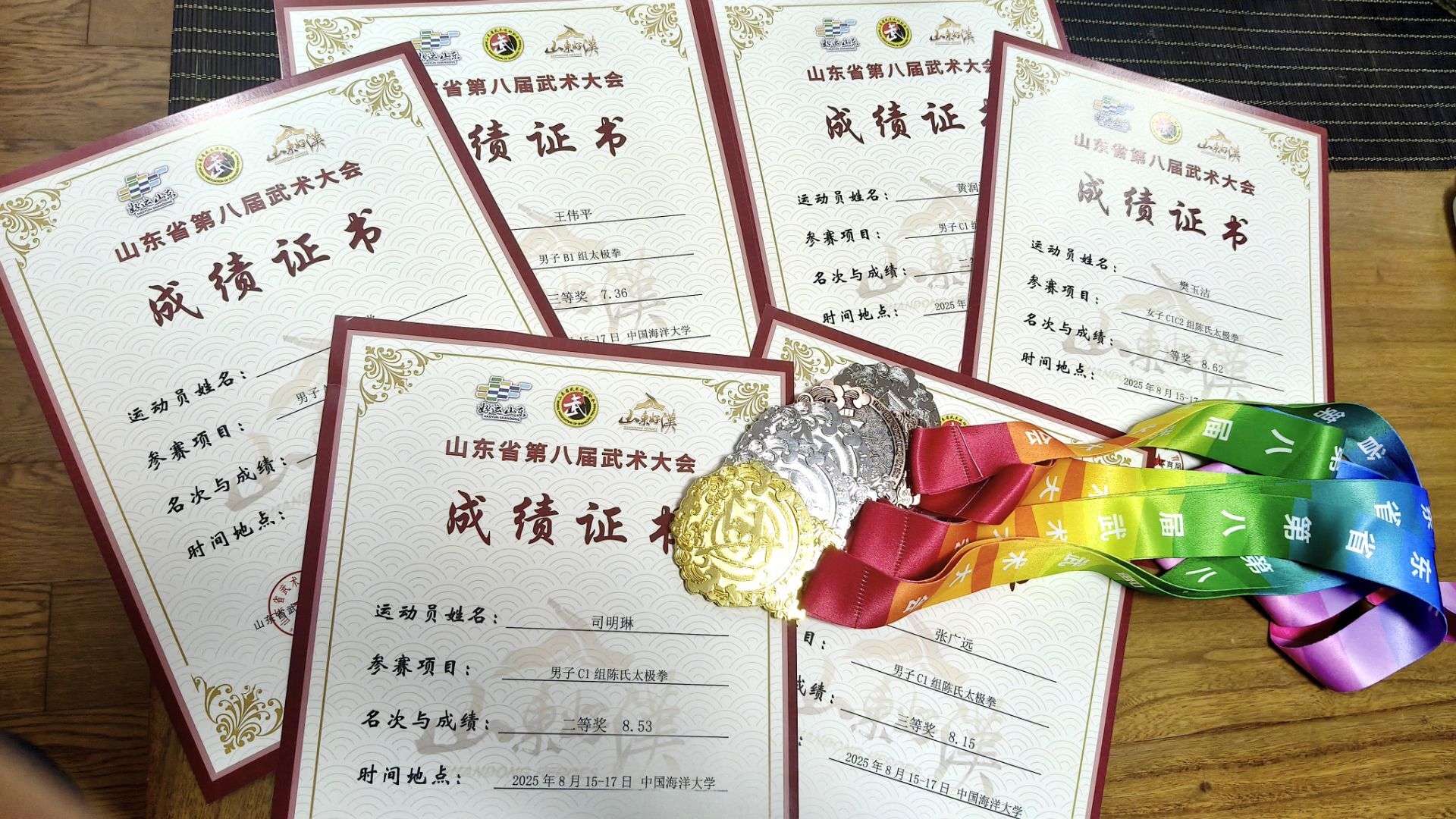 近日,山东省第八届武术大会在中国海洋大学顺利举行。本次比赛吸引省内外武术协会、俱乐部、学校以及民间武术团体300余支队伍,近5000人参赛,生物工程学院海洋231班学生樊玉洁、黄润泽、张广远分别获得一等奖、二等奖、三等奖,展现了生物工程学院学子良好的身体素质和竞技水平。