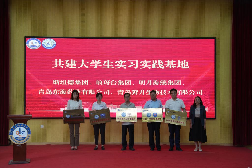 马翠萍为斯坦德集团、琅玡台集团、明月海藻集团、青岛东海药业、青岛奔月生物技术公司大学生实习实践基地授牌。