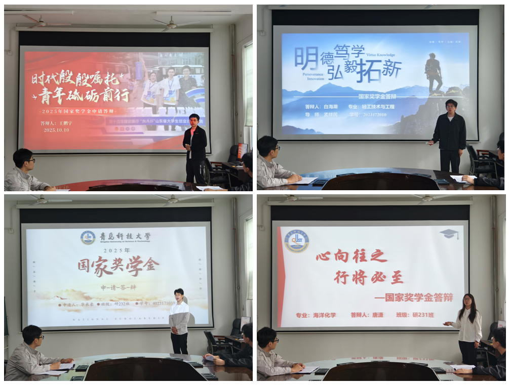 为落实学校关于研究生国家奖学金评审的工作要求,充分发挥榜样示范引领作用,激励广大研究生勤奋学习、潜心科研、全面发展,10月10日,生物工程学院在一号行政楼213会议室举行2025年研究生国家奖学金答辩会。学院研究生国家奖学金评审委员会成员担任评委,各年级研究生代表到场观摩学习。