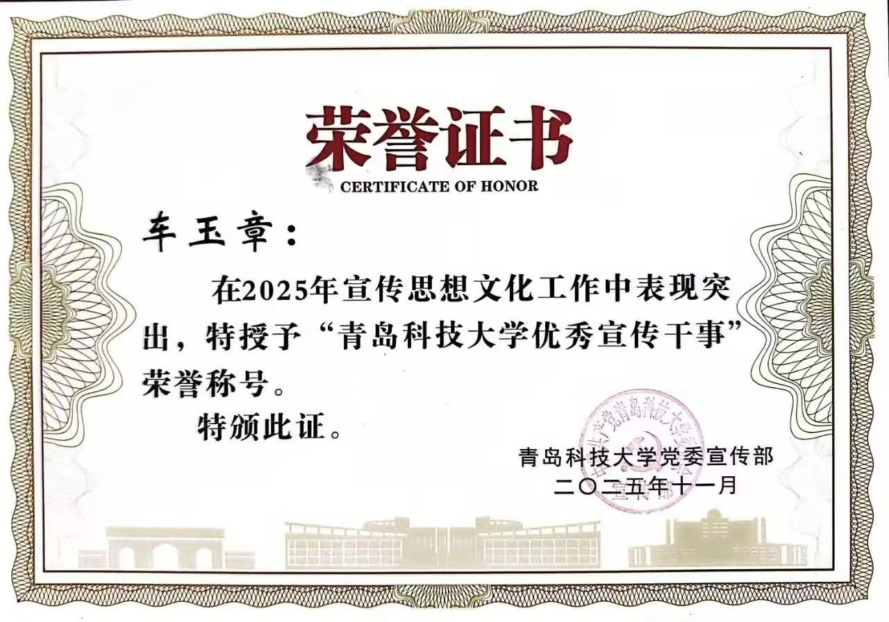 11月4日下午,青岛科技大学2025年融媒体联盟大会暨融媒体中心换届大会在崂山校区第三报告厅举行。生物工程学院荣获2025年“新闻宣传先进单位”“优秀微信公众平台”称号,车玉章老师荣获“青岛科技大学优秀宣传干事”称号。