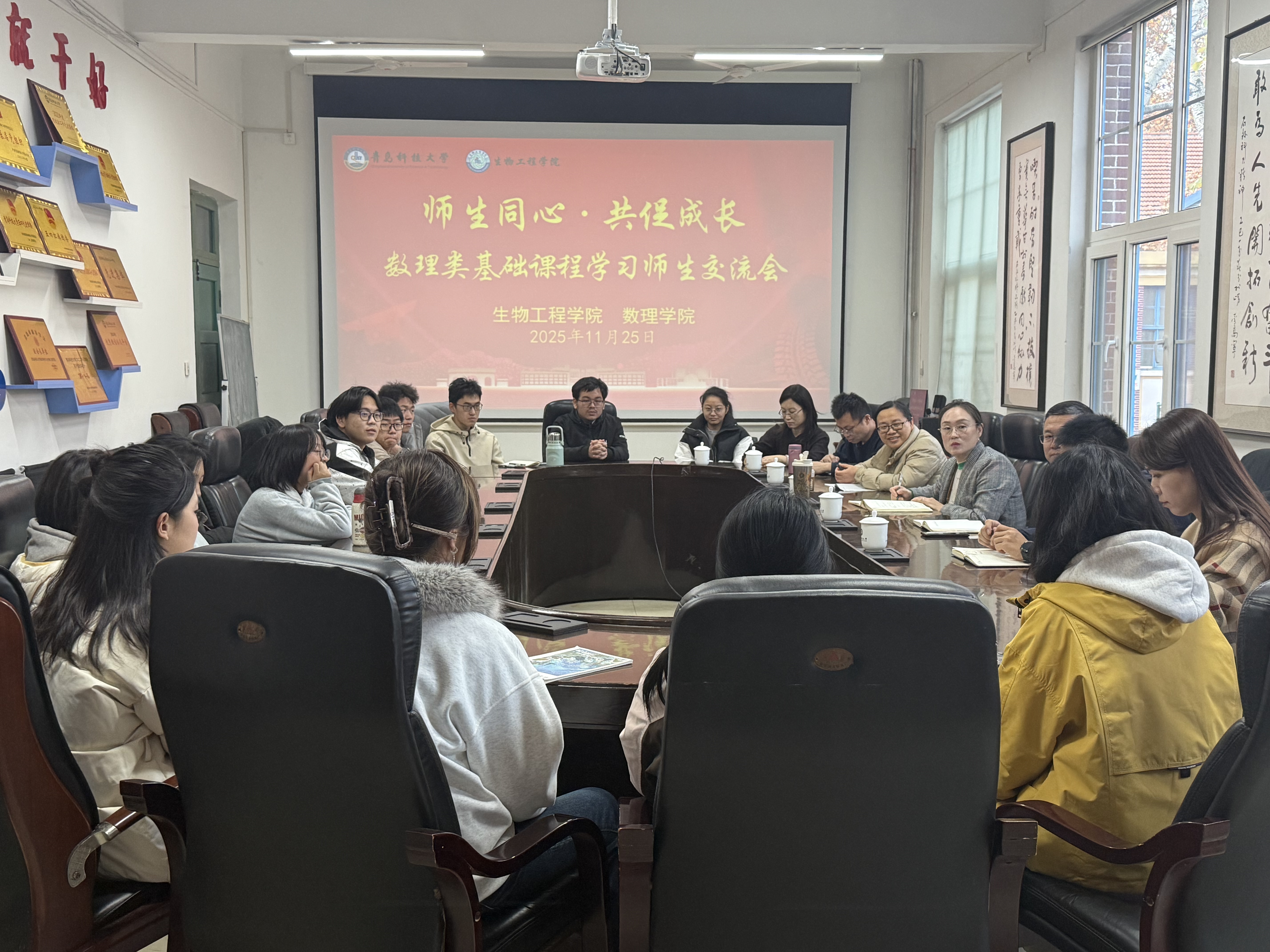 为加强师生沟通交流,帮助学生更好掌握数理类基础课程的学习方法,提升学习成效,11月25日下午,生物工程学院举办“师生同心˙共促成长” 数理基础课程学习师生交流会。数理学院教师吕浩、夏丰金、翟富菊、王所杰,生物工程学院副院长李昉、党委副书记刘浩及2024级、2025级部分学生参加了交流会。