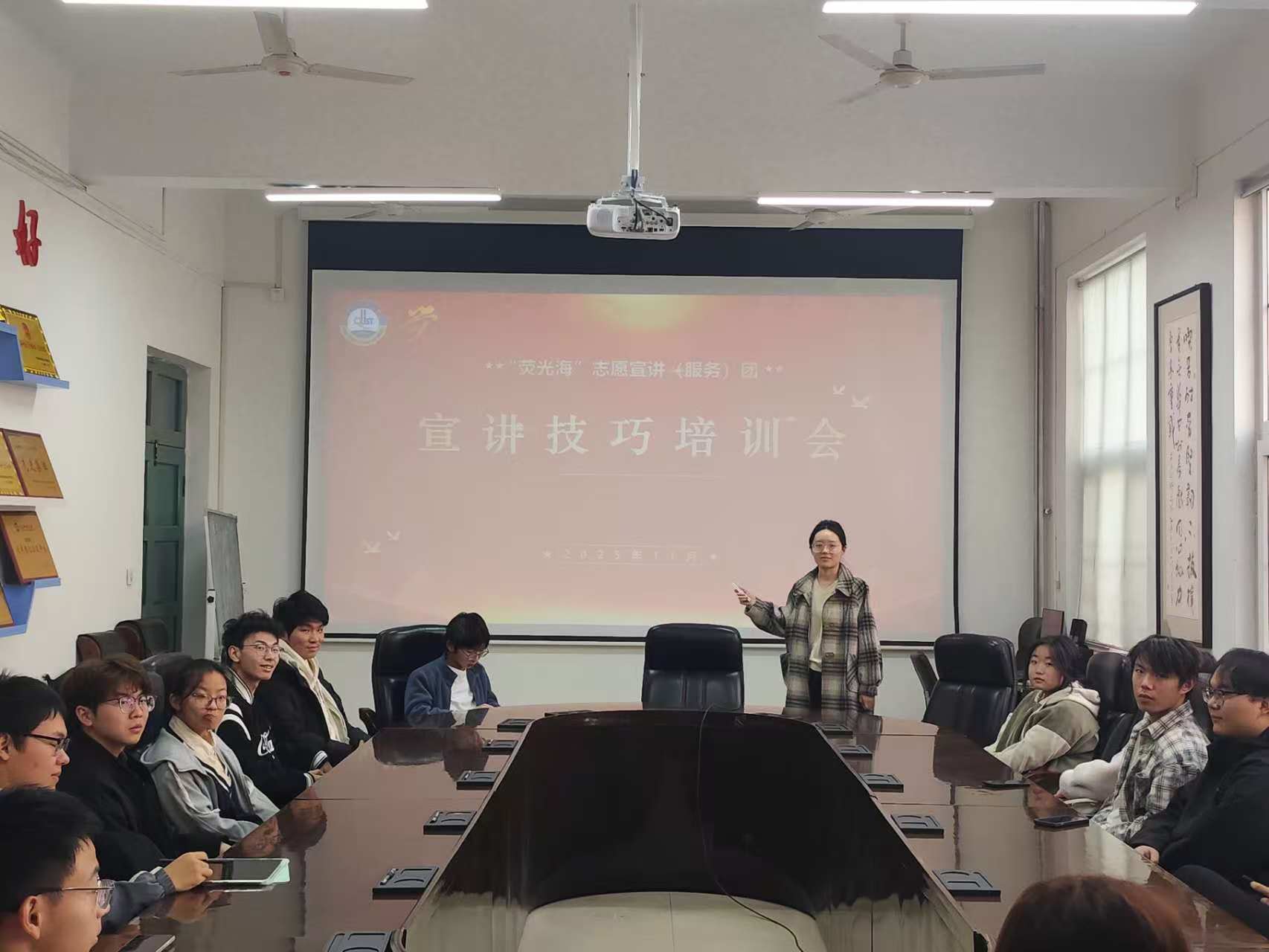 为持续提升团队专业宣讲能力与服务水平,11月29日,生物工程学院“荧光海”志愿宣讲(服务)团组织宣讲技巧专题培训。本次培训由宣讲团团长赵梦艳主讲,部分宣讲团骨干成员参加。