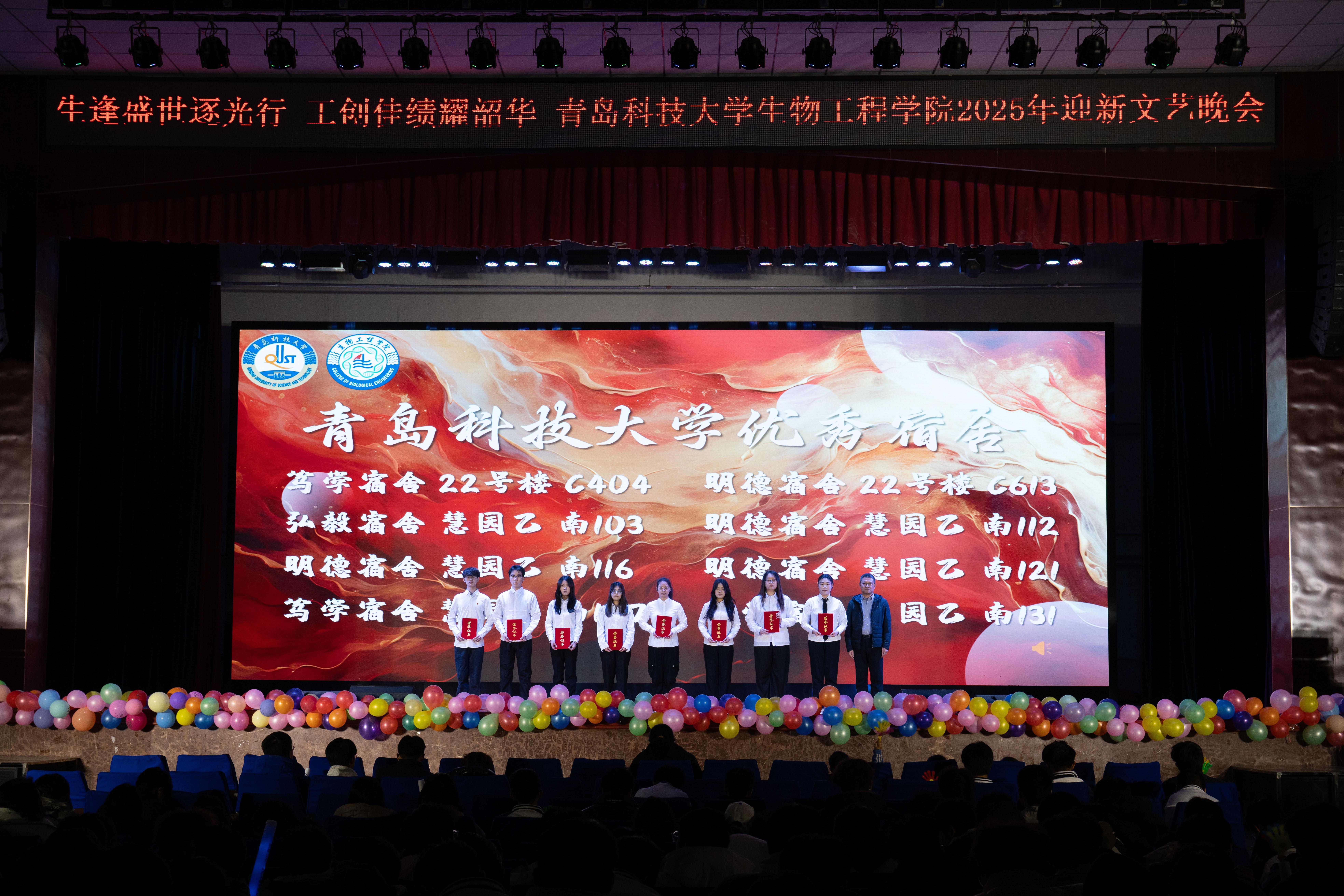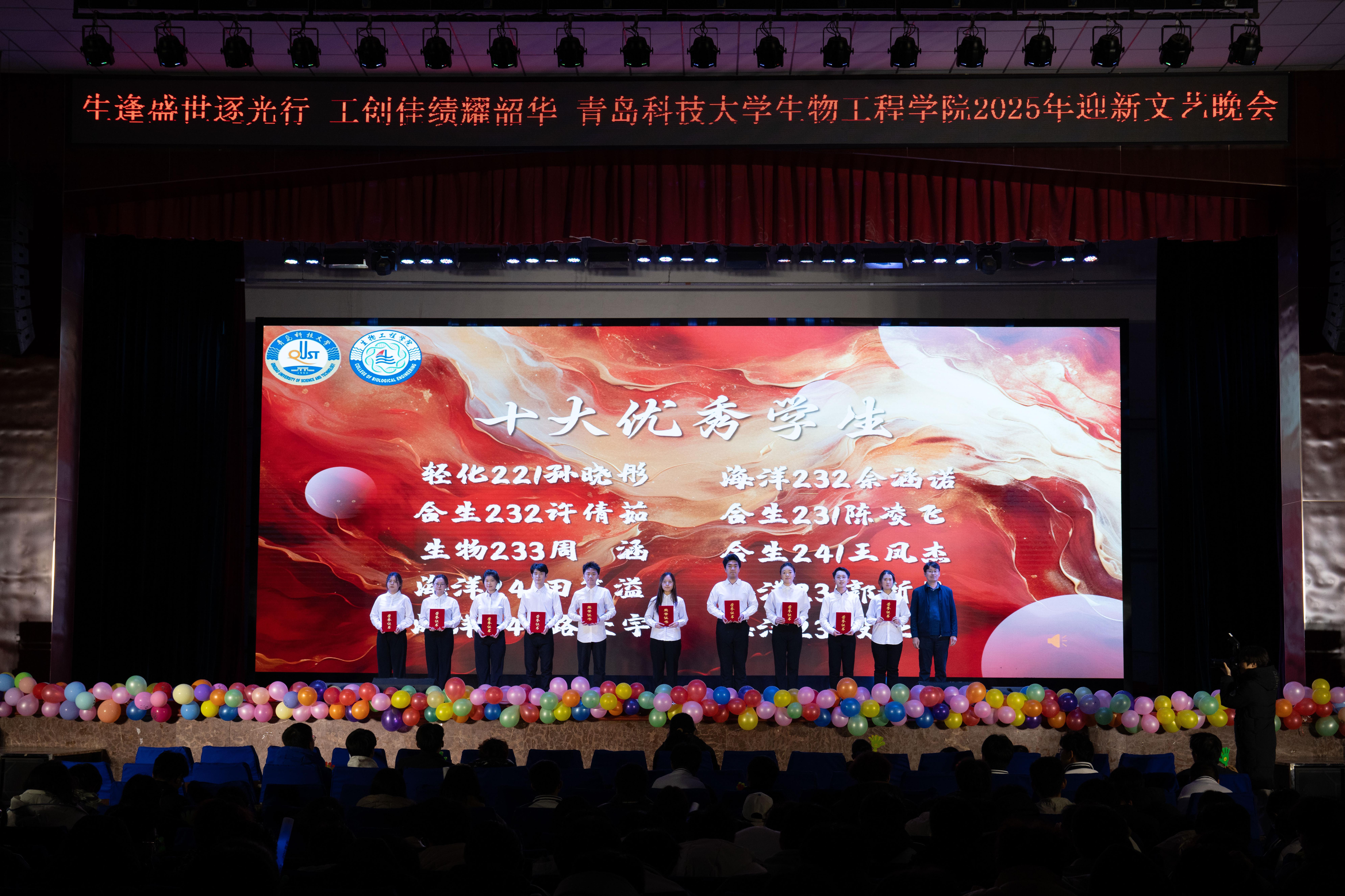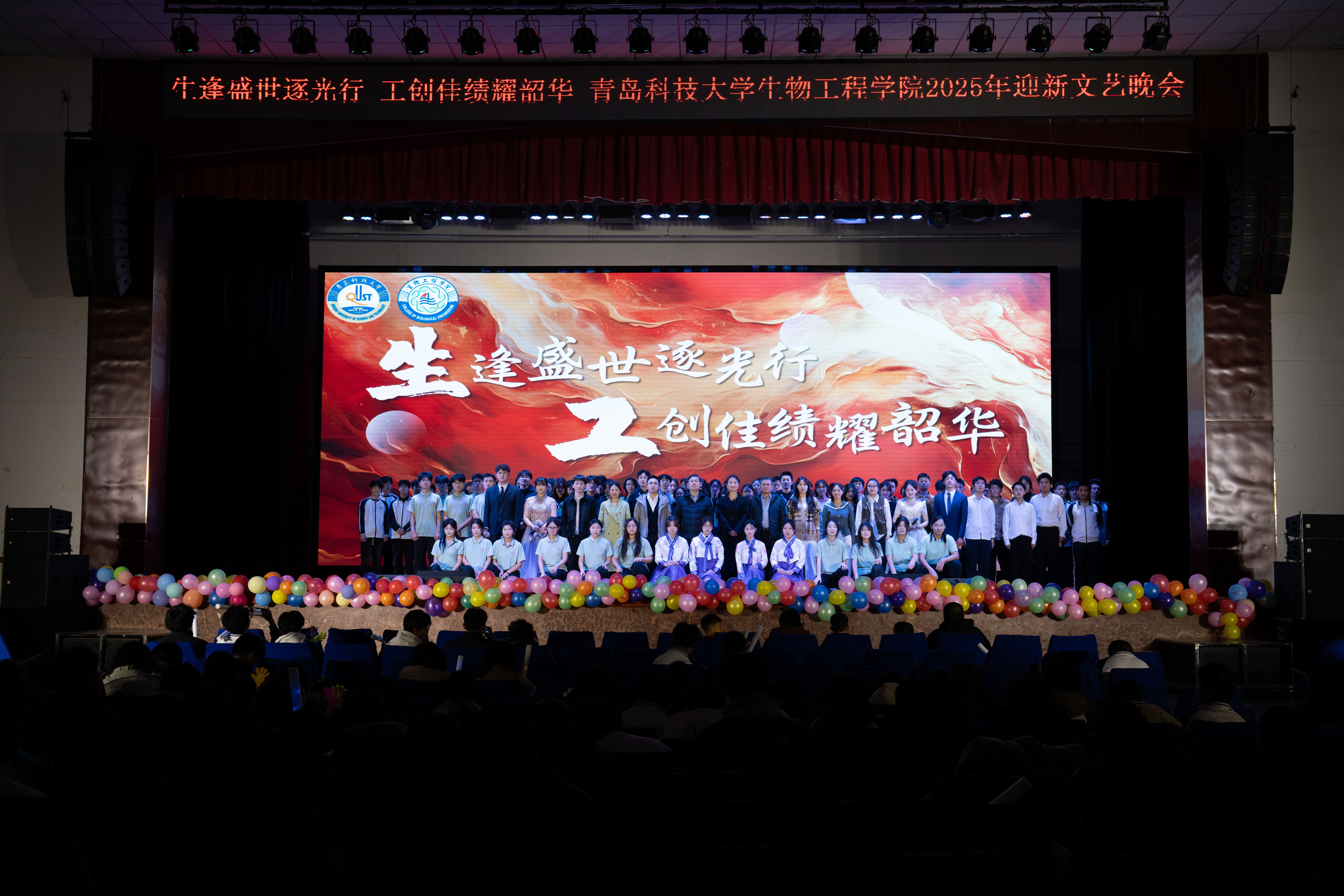为进一步贯彻党的二十大精神,激励广大生工学子勇担时代重任,传承青春力量,12月2日晚,生物工程学院于四方校区西礼堂隆重举办“生逢盛世逐光行 ,工创佳绩耀韶华”2025年迎新晚会。生物工程学院院长顾玉超、党委副书记兼副院长刘浩、洛阳路街道周口路社区党委书记李静、学院团委书记秦洪庆、全体辅导员和全体新生参加活动。