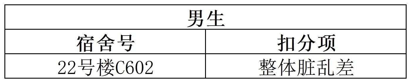 期望同学们及时整改问题:将悬挂物品统一收纳至衣柜或指定区域,每日睡前整理床上衣物、归置被褥。规整的宿舍环境能让生活更有条理,也能减少安全隐患——愿大家主动落实日常整理,共同营造清爽、舒适的宿舍氛围。
