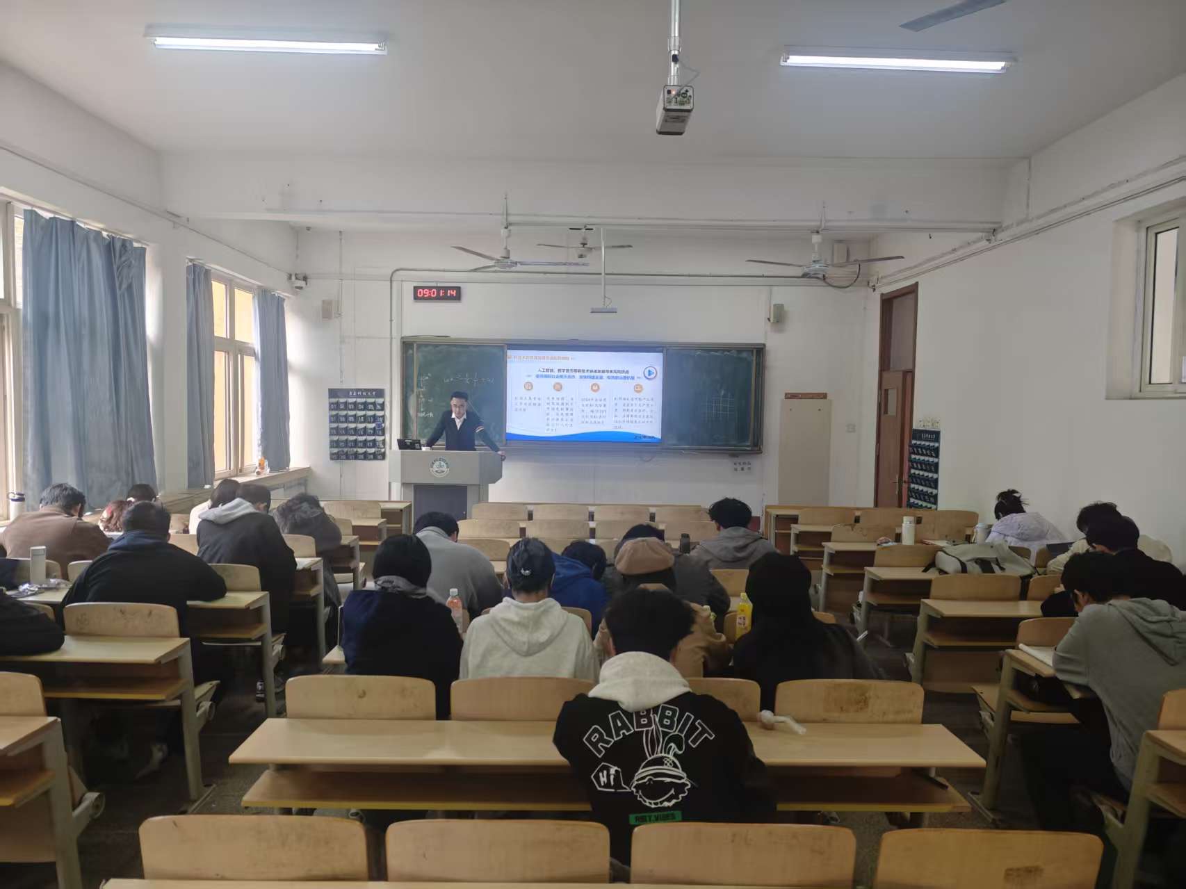 车玉章围绕“人工智能与生物工程融合发展的现状与前景”,结合具体案例介绍了AI在药物设计、生物信息分析、智能发酵控制等领域的创新应用。他鼓励同学们主动学习新工具、拓展新视野,将人工智能技术转化为提升专业能力、服务产业升级的重要支撑。