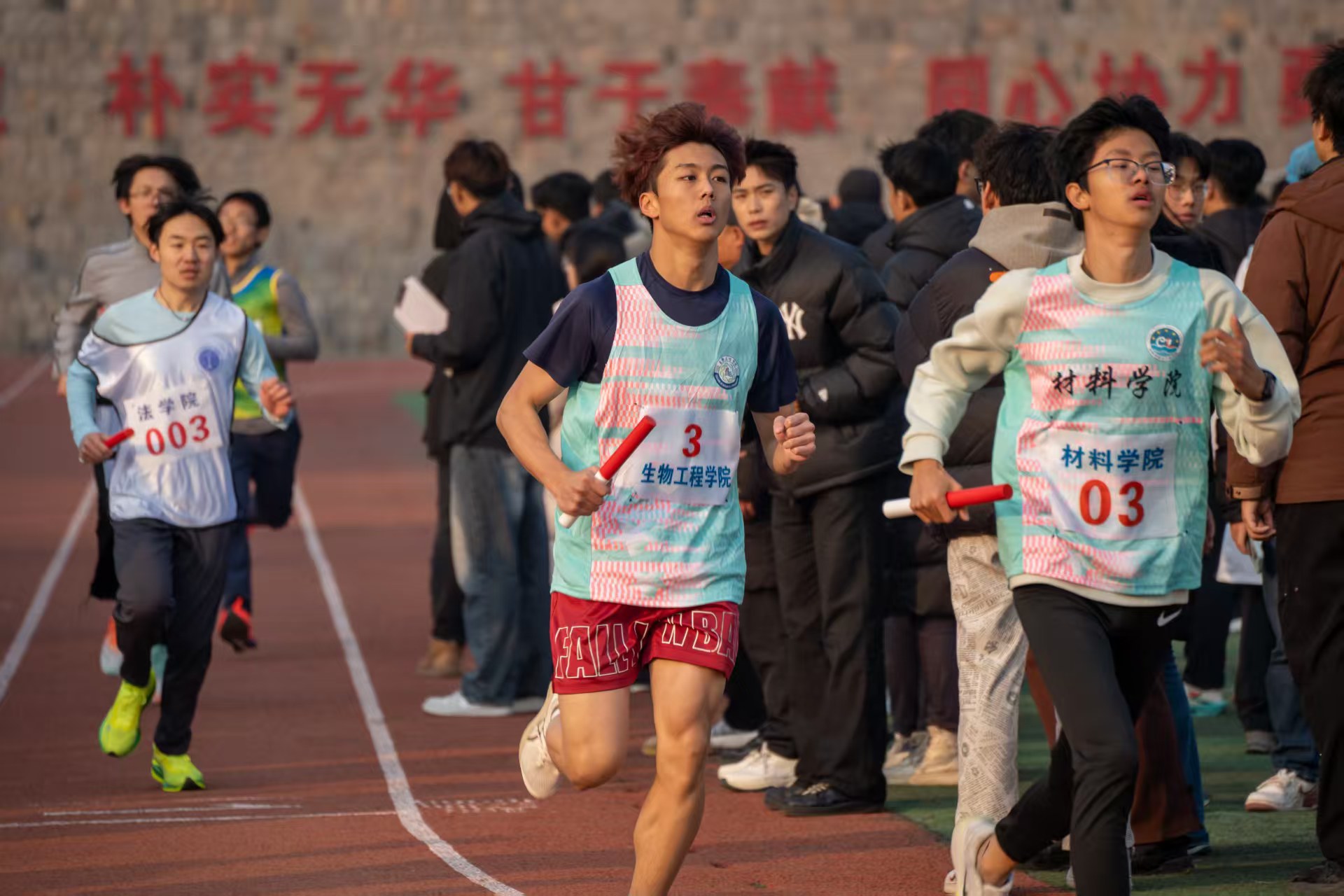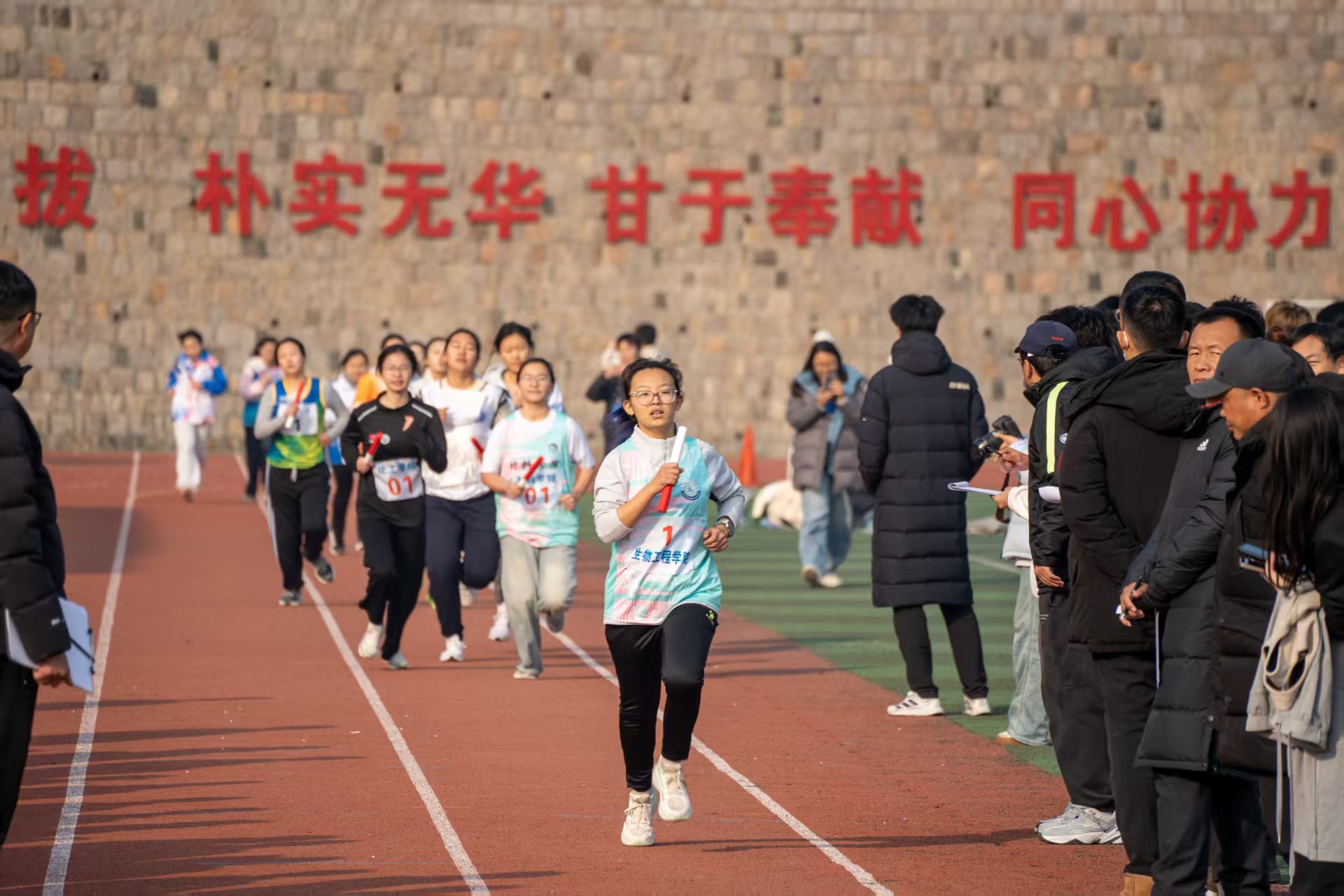 赛场上,选手们如离弦之箭冲出起点。在凛冽寒风中,他们迈着坚定的步伐,这不仅是体力的考验,更是信念的磨砺。选手们相互鼓劲、默契配合,掌心的接力棒传递的不仅是速度,更是生工学子的团结与担当。为了保证比赛的顺利进行,志愿者们提前到位、坚守岗位,以饱满的热情为同学们提供物资补给、赛道指引等贴心服务,用实际行动诠释了无私的奉献精神。