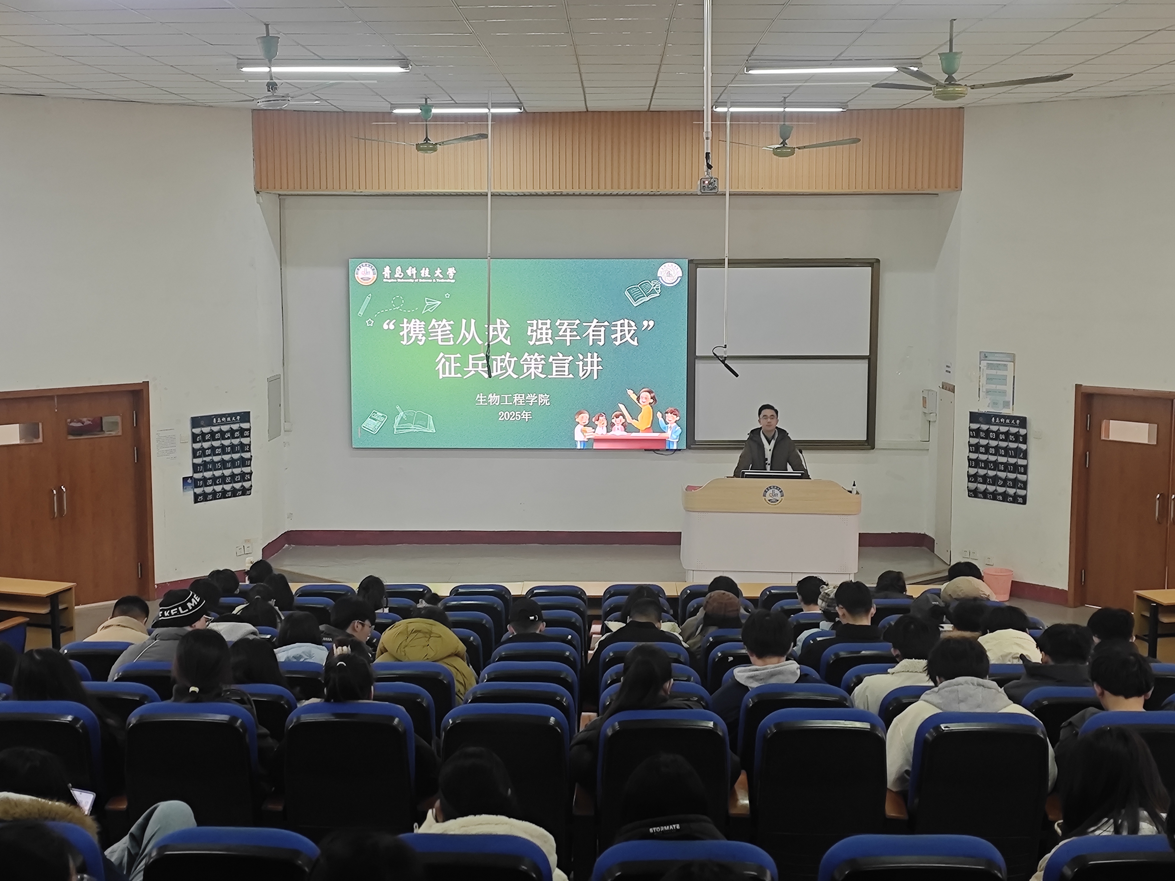 为深入贯彻落实国家征兵工作部署,扎实推进国防教育,激发青年学子携笔从戎、报效祖国的热情,12月22日,生物工程学院面向2022级全体学生组织开展征兵政策专题宣讲会。本次宣讲会由学院2022级辅导员车玉章主持。