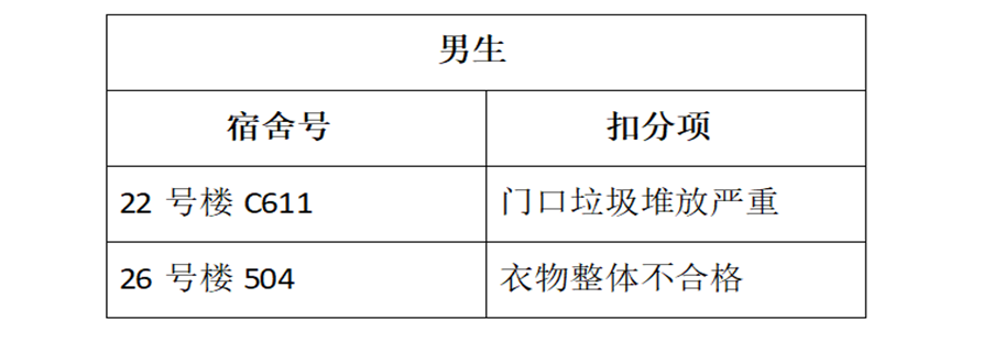 请各年级对照问题监督不合格宿舍进行整改。