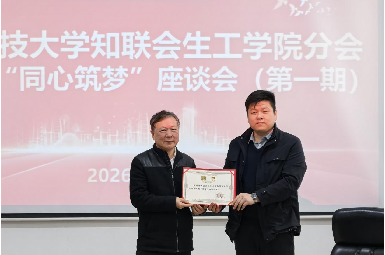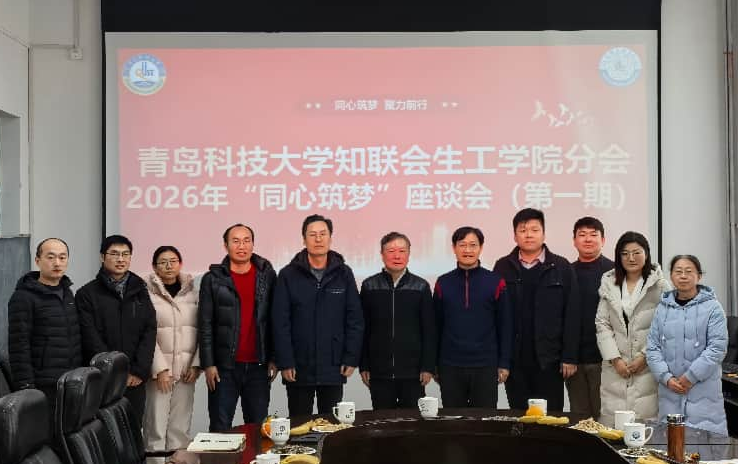 为深入学习贯彻习近平总书记在党外人士座谈会上的重要讲话精神,凝聚党外知识分子智慧力量,2026年1月30日,青岛科技大学知联会生物工程学院分会在学院会议室举办了 2026年“同心筑梦”座谈会(第一期)。学校知联会副会长、环境学院院长田文德,青岛市政协委员王家林教授,学院党委书记周宪锋,党委统战部民主党派科科长孙晓旭,以及学院知联会会员、党外教师代表等参加了本次座谈会。