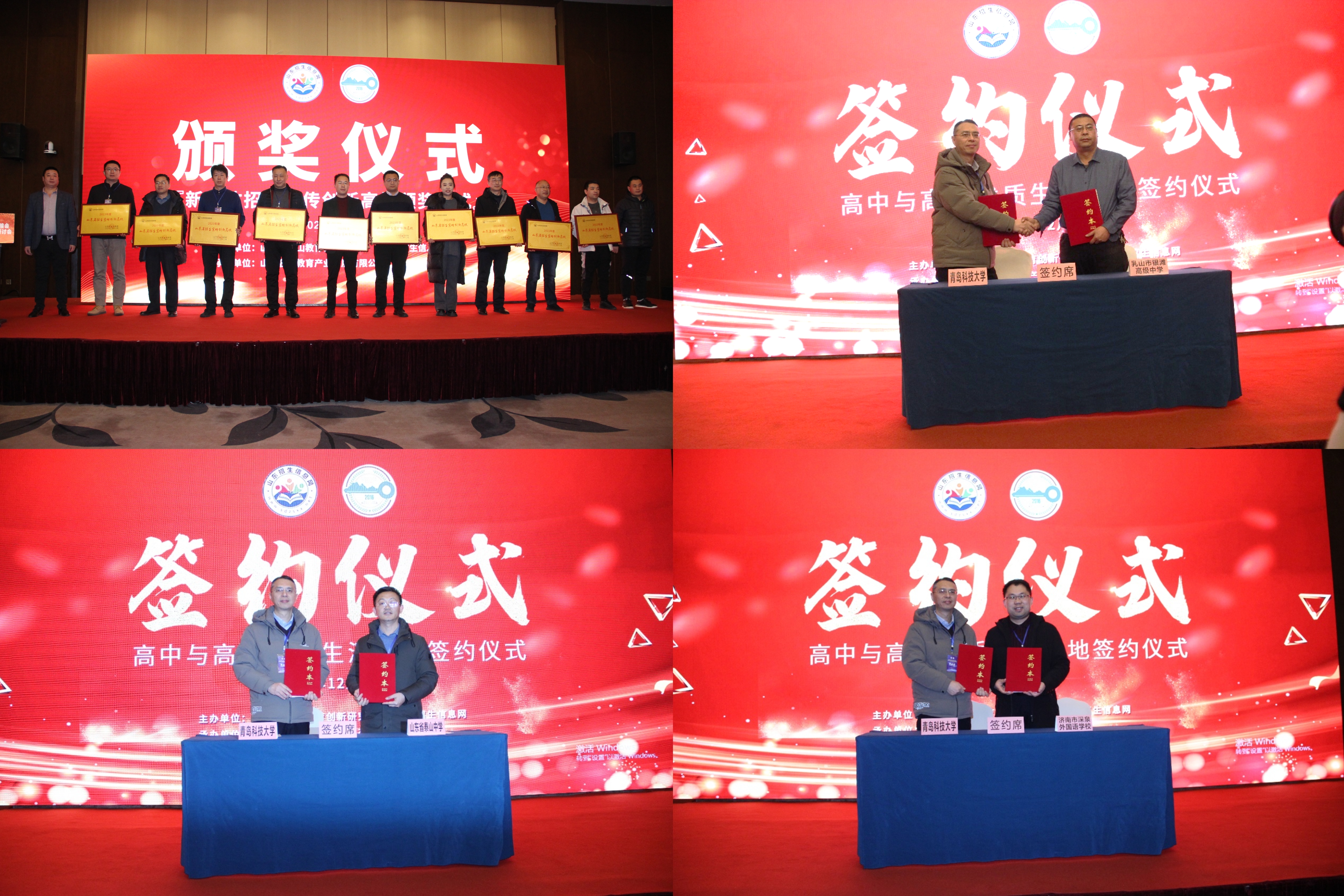 张恒教授代表学校与寿光市第一中学、山东省泰安泰山中学、威海乳山市银滩高中、威海乳山市第二中学、聊城冠县武训中学、青岛为明学校、济南市深泉外国语学校七所高中签订《优秀生源基地共建协议书》,授予其“青岛科技大学优质生源基地”。